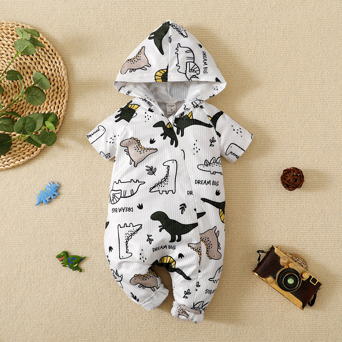 Baby Boy Short Sleeve Dinosaur Print Hooded Jumpsuit Wholesale