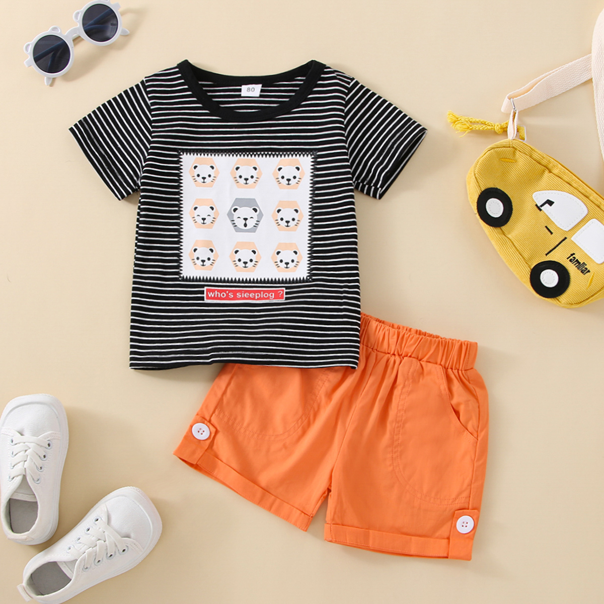 Baby Boy 2 Pieces Animal Lion Stripes T-Shirt & Shorts Wholesale