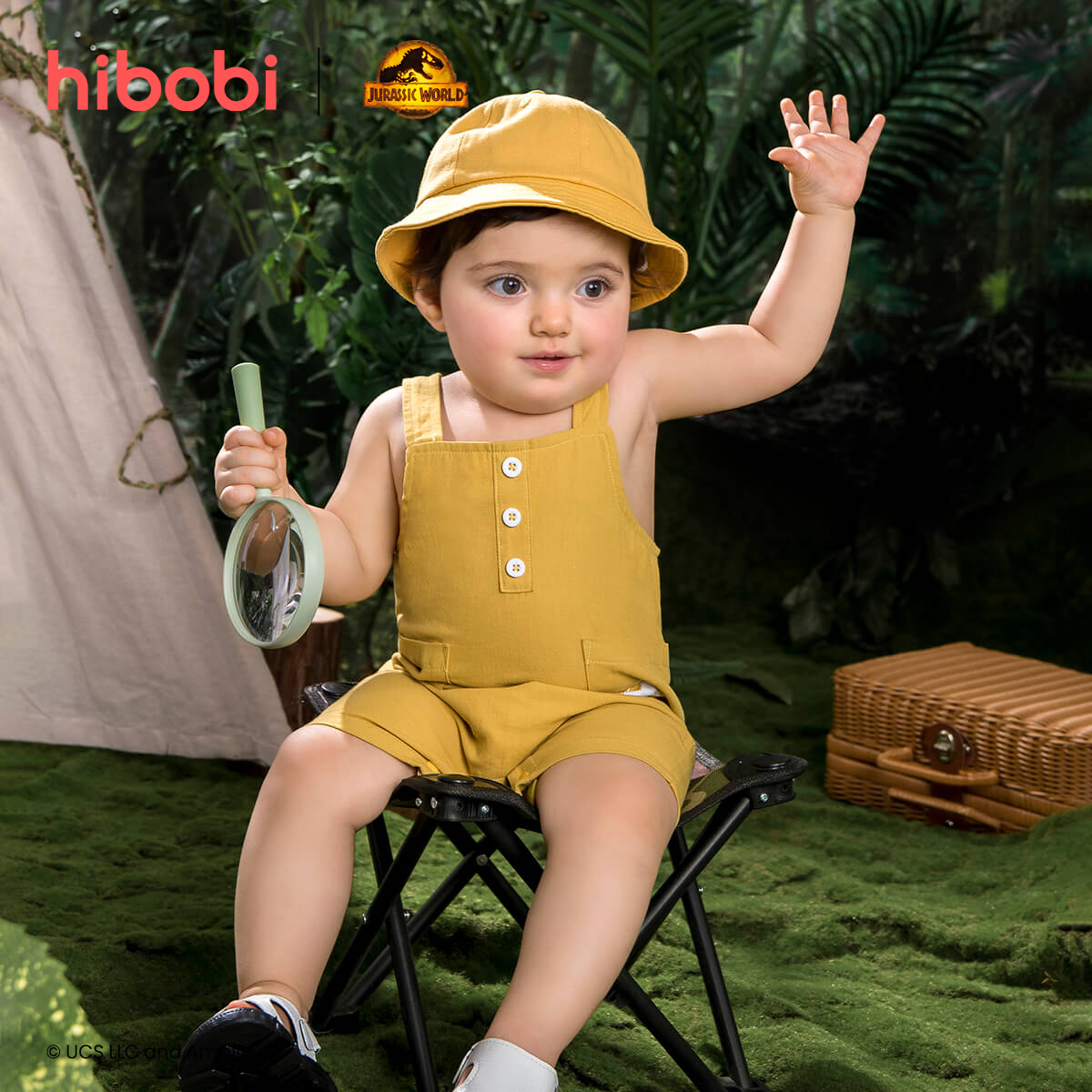 Jurassic World × hibobi boy baby Dinosaur Print Yellow Pocket Halter Bodysuit Wholesale