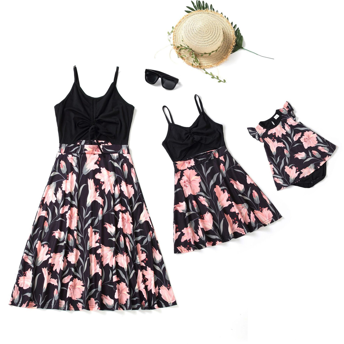Family Matching Floral Print Sleeveless Dress and T-shirt Wholesale