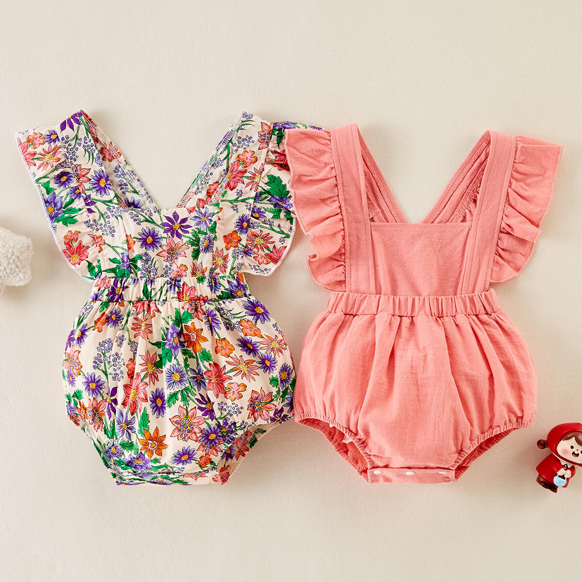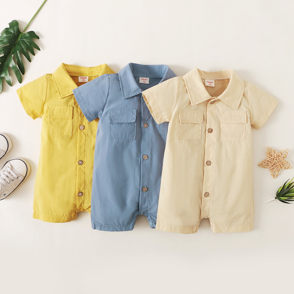 hibobi Design Solid Color Print One-piece Cotton Jumpsuit Wholesale