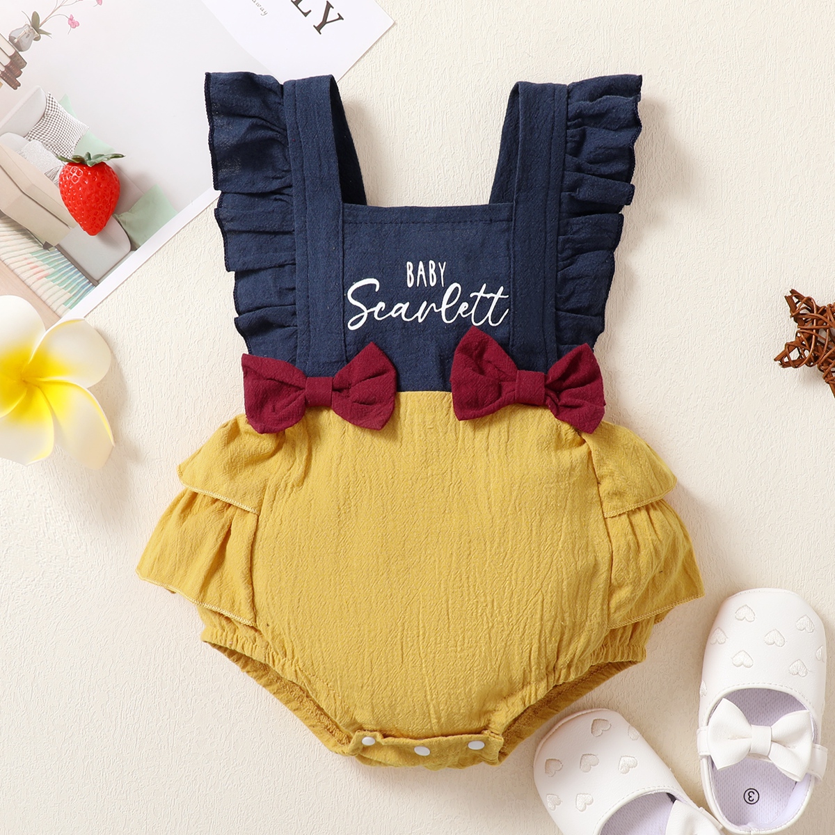 Baby Girl Ruffle Sleeve Bowknot Color-block Bodysuit Wholesale