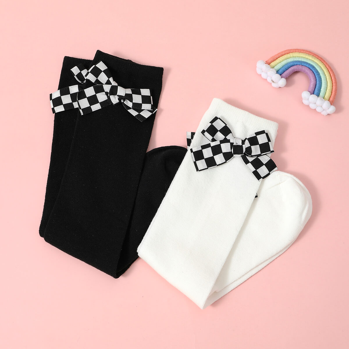 Toddler Girl Solid Color Checkerboard Bow Children Socks Wholesale