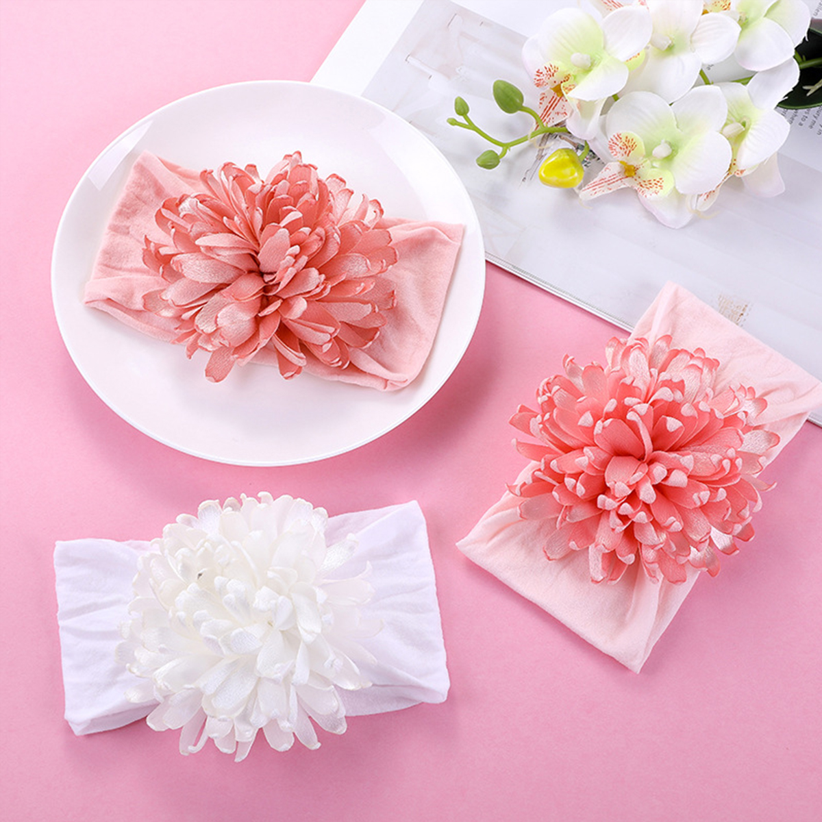 Baby Girl Nylon Wide-Brimmed Flowers Headwear Wholesale