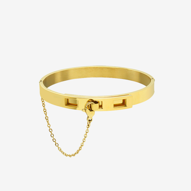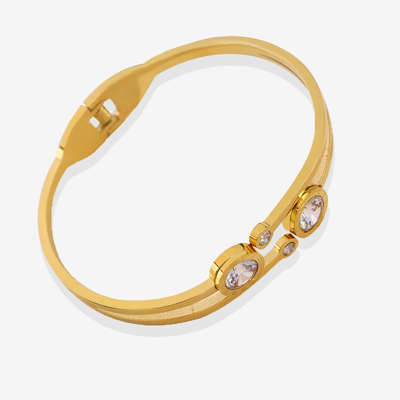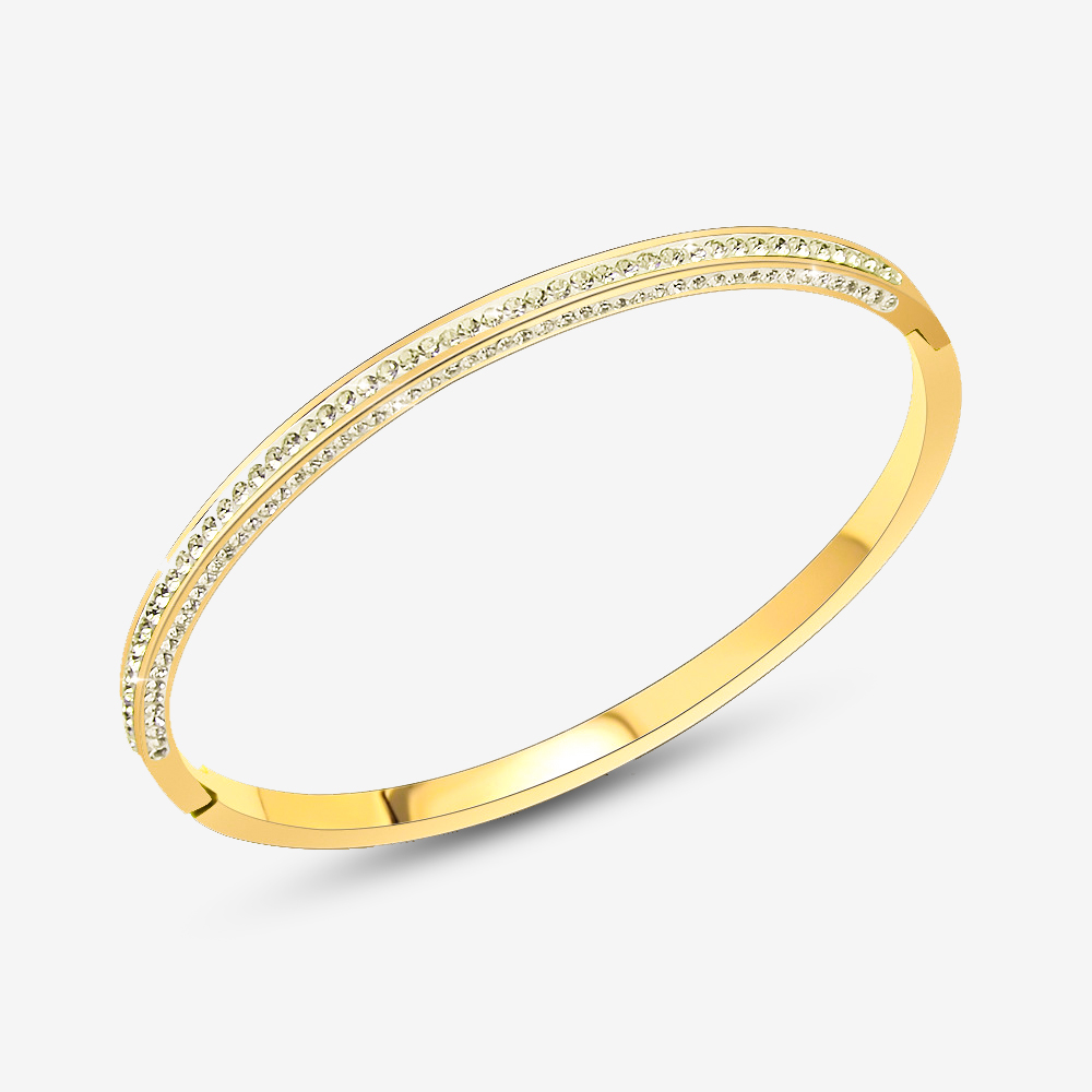 Double Black Stripes With Three Diamonds Inlaid Bangle