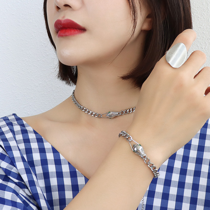 Snake Eyes Half Choker Necklace & Bracelet Set