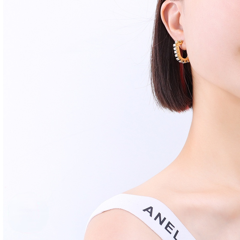 U Shape Diamonds Inlaid Hoops