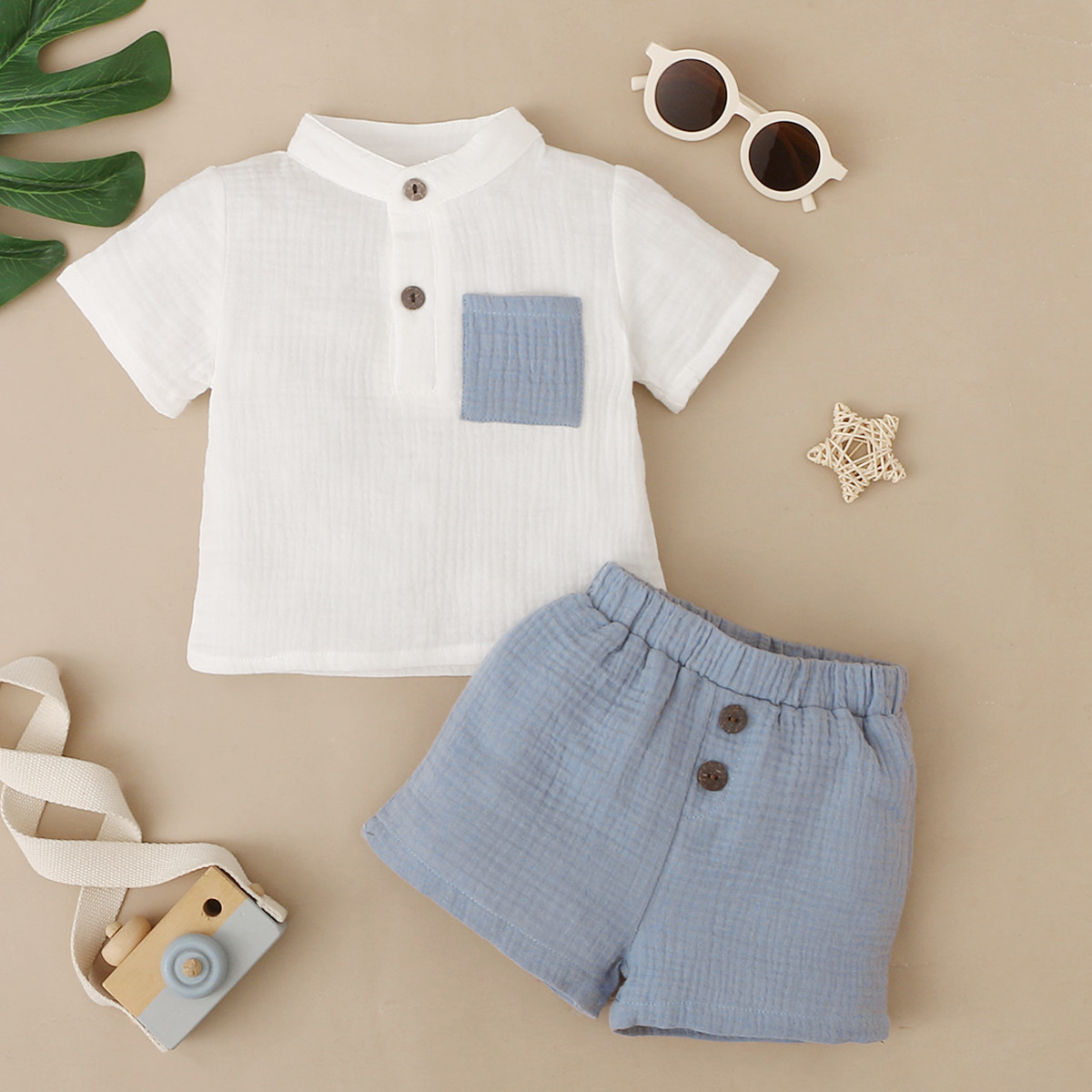 Baby Boy Color-block Pocket Decor Stand-collar T-Shirt & Shorts Wholesale