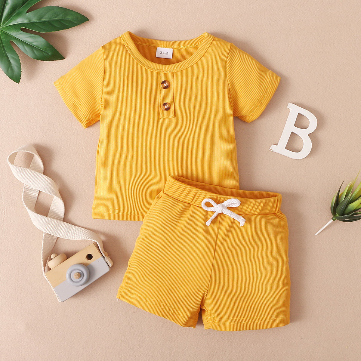 Baby 2 Pieces Solid Color T-Shirt & Shorts Wholesale