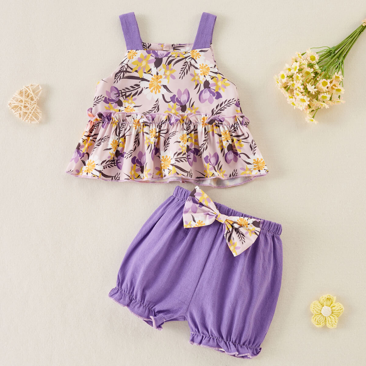 hibobi Girl Baby Pastoral Bow Camisole sets & Headband Wholesale
