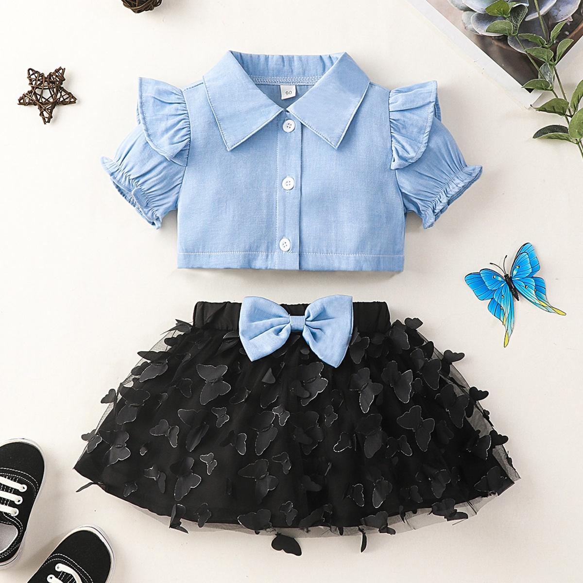 Toddler Girl Sweet Ruffle Butterfly Shirt & Skirt Wholesale