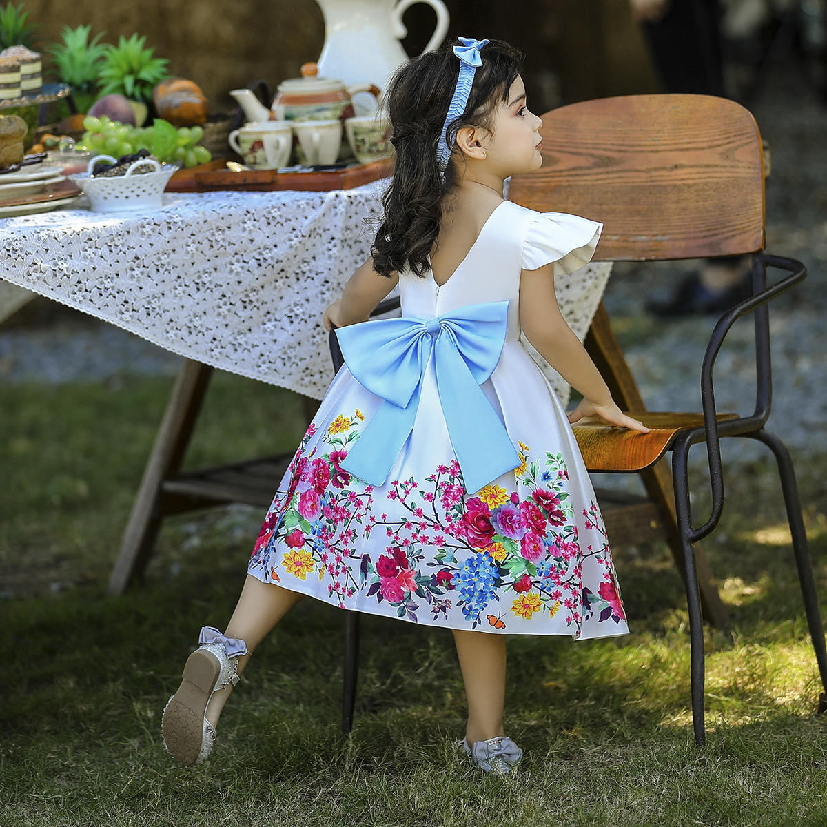 Toddler Girls Sweet Retro Floral Color-block Formal Dress Wholesale