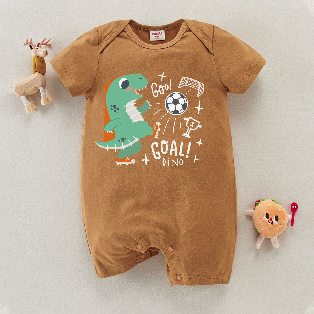 hibobi Boy Baby Dinosaur Football Print Short Sleeve Bodysuit Wholesale