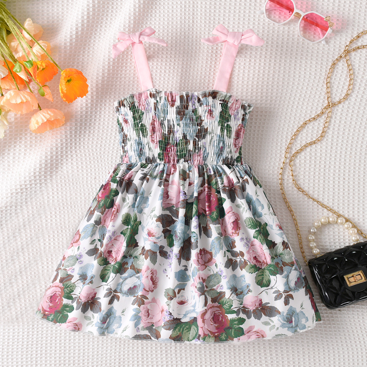 Toddler Girl Sweet Floral Smocking Dress Wholesale