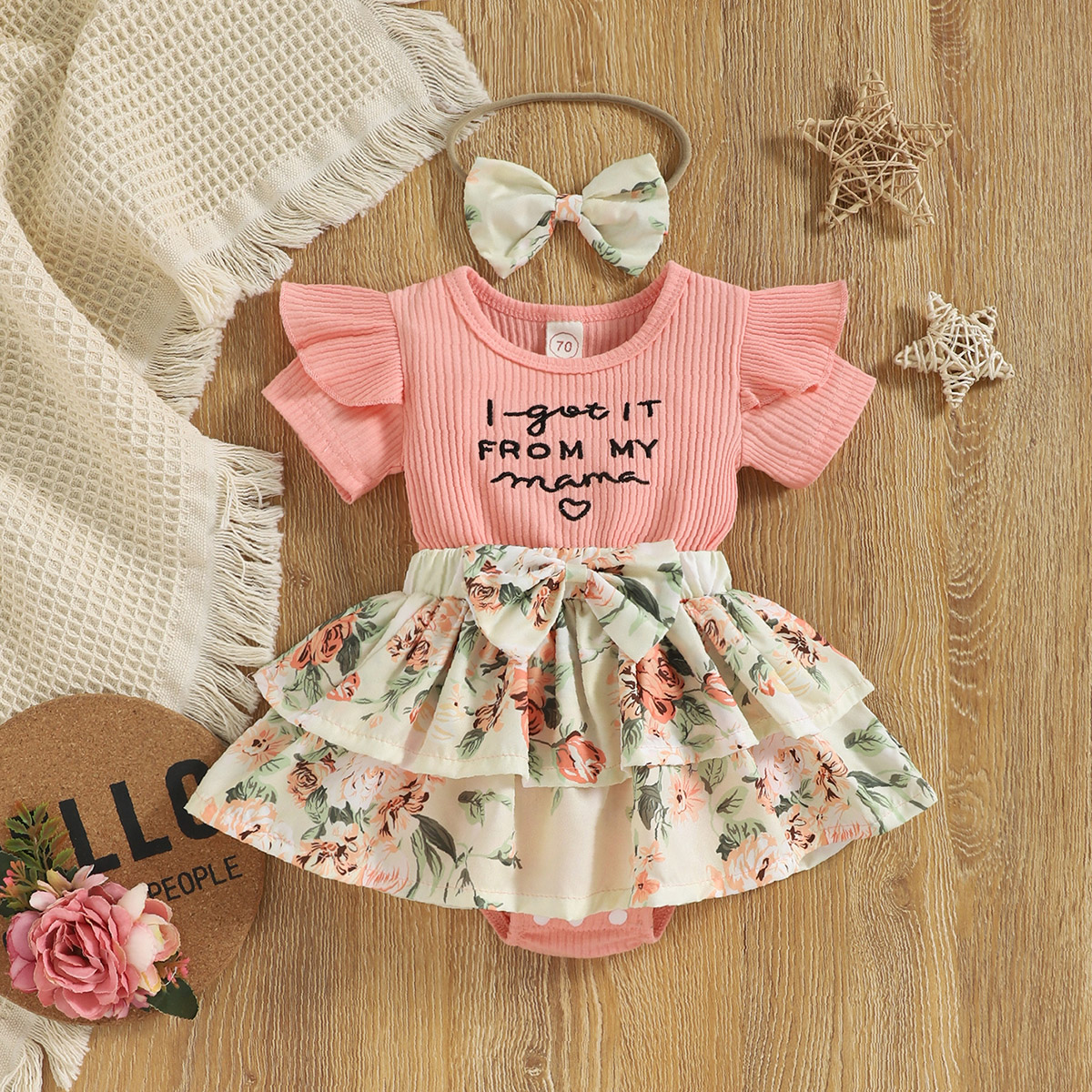 hibobi Girl Baby Pastoral Floral fly Sleeve Jumpsuit & Headband Wholesale