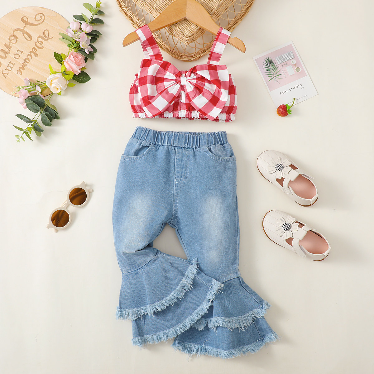 Toddler Girls Straps Plaid Polka Dot Top & Pants Wholesale