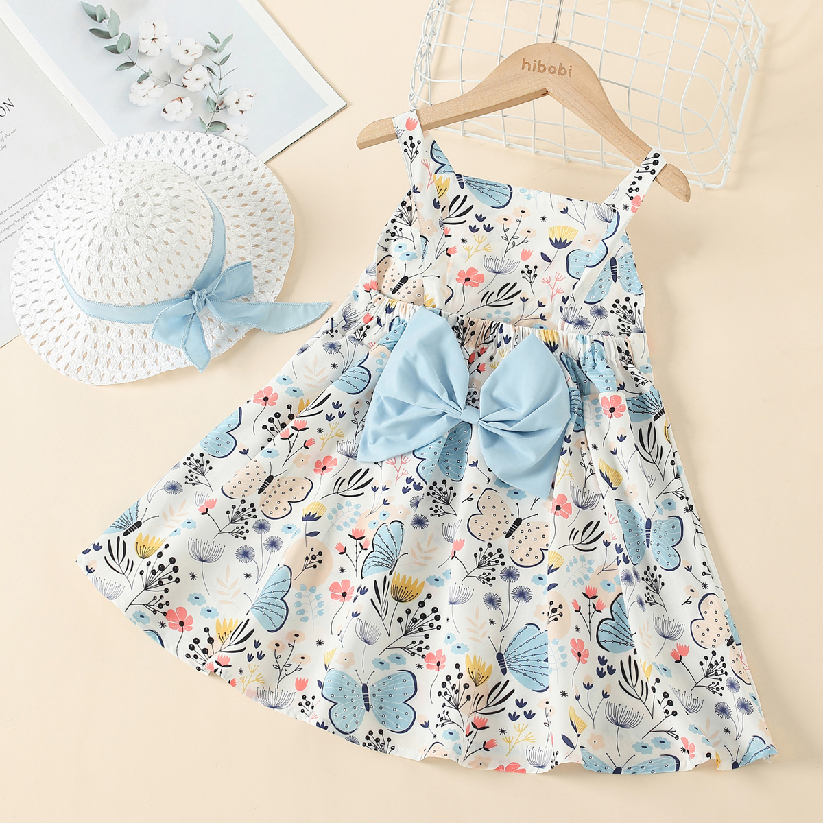 Toddler Girls Cotton Sweet Floral Bow Dress & Hat Wholesale