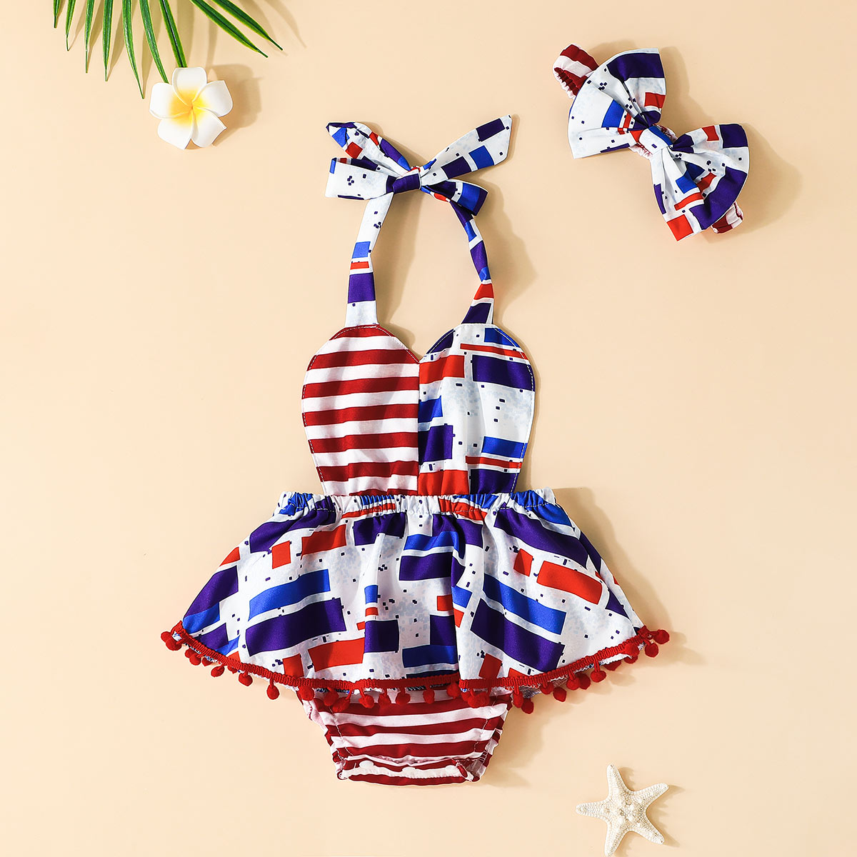 Baby Girl Independence Day Halter Neck Bodysuit with Headband Wholesale