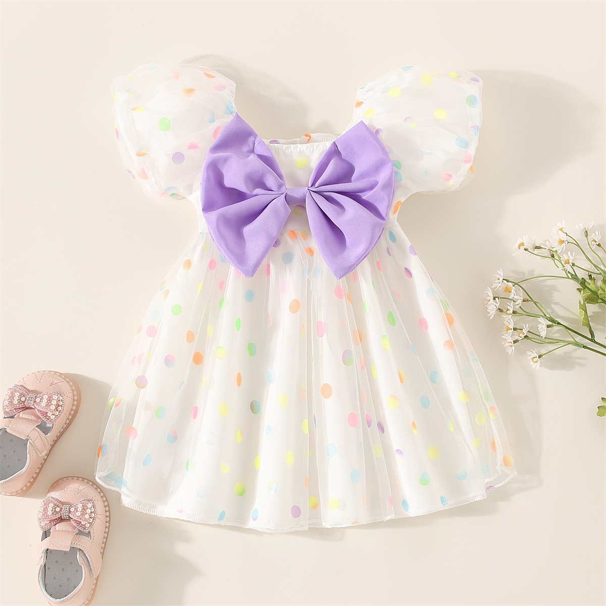 Toddler Girls Sweet Polka Dot Bow Dress Wholesale