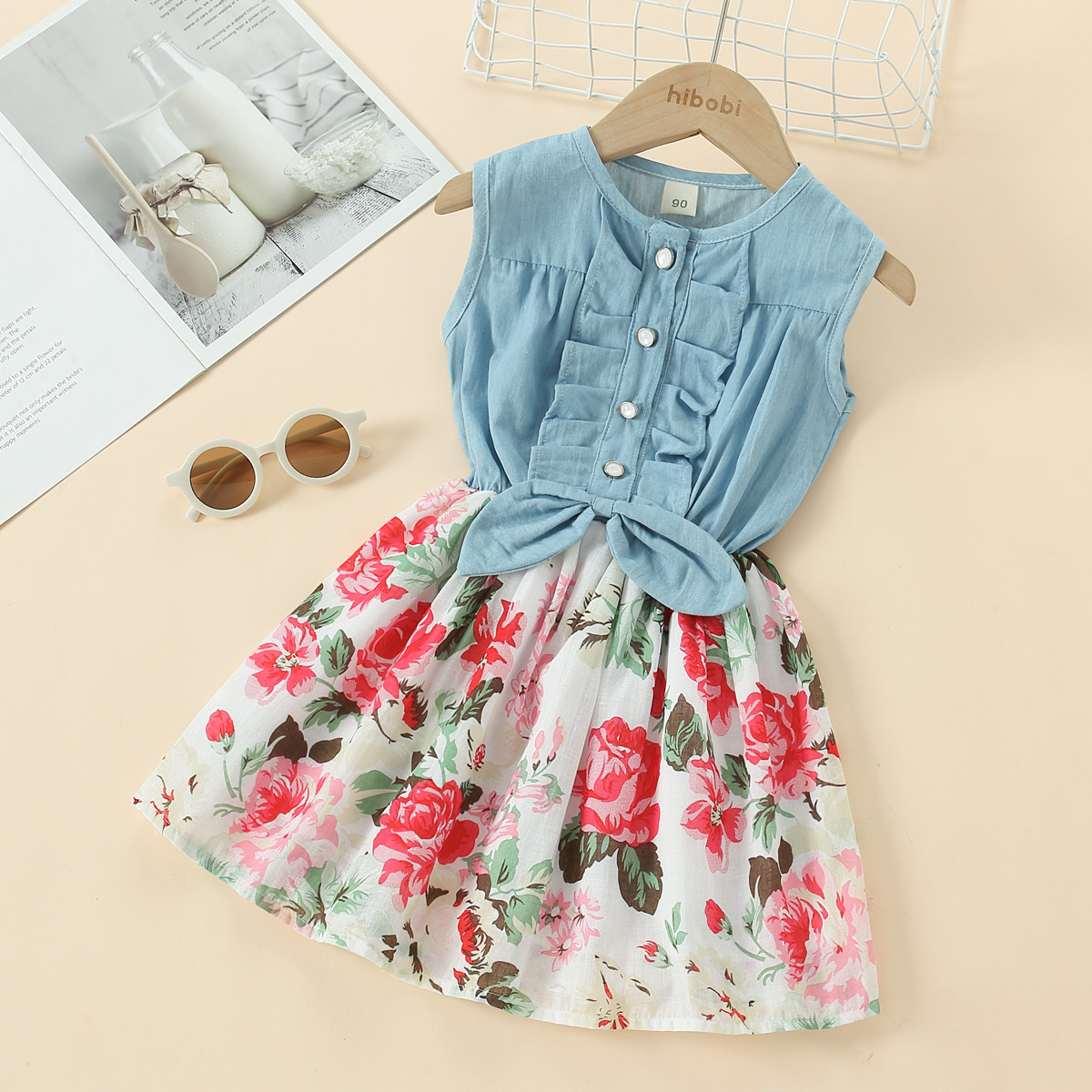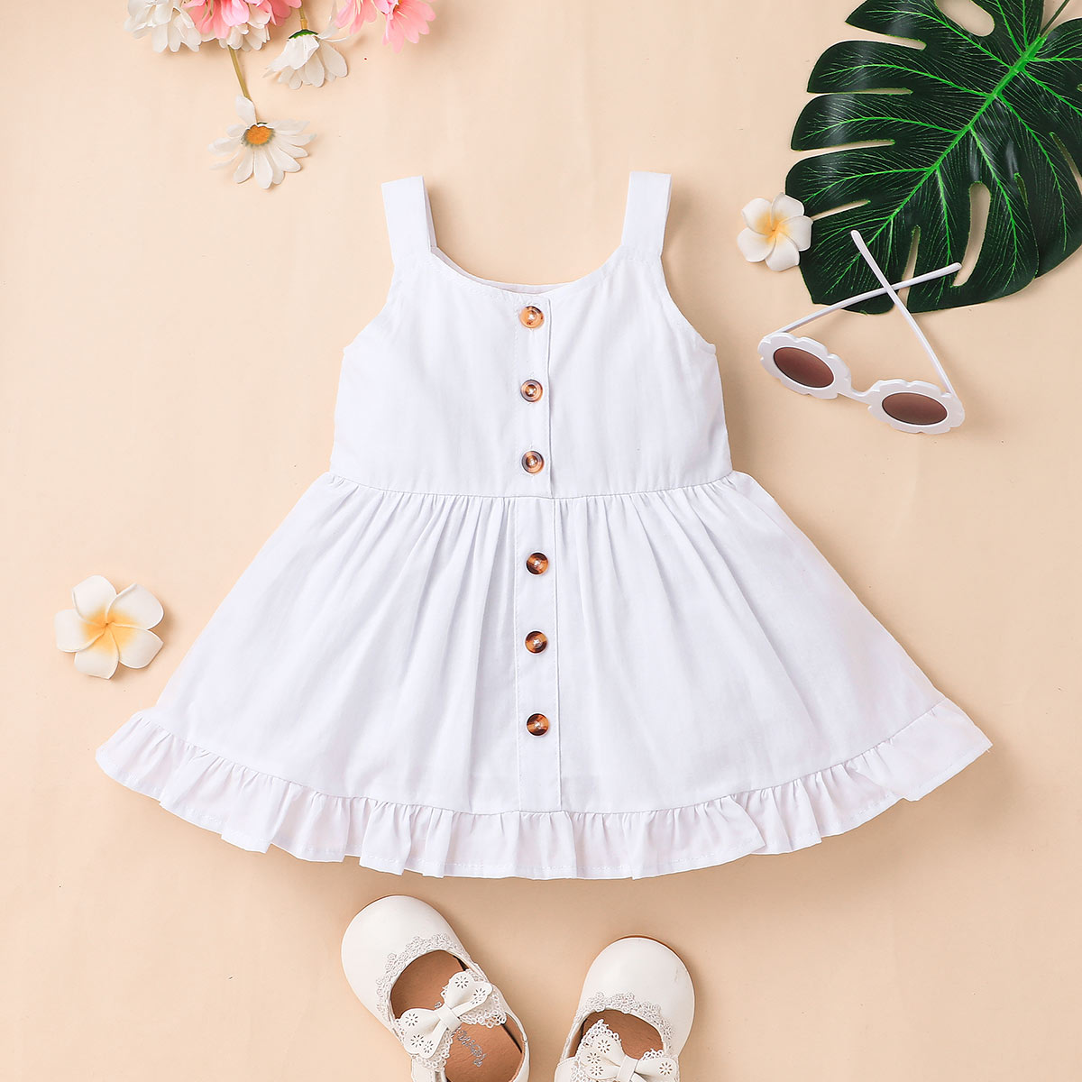 Baby Girl Beautiful Sleeveless Single-breasted Solid Dress Wholesale
