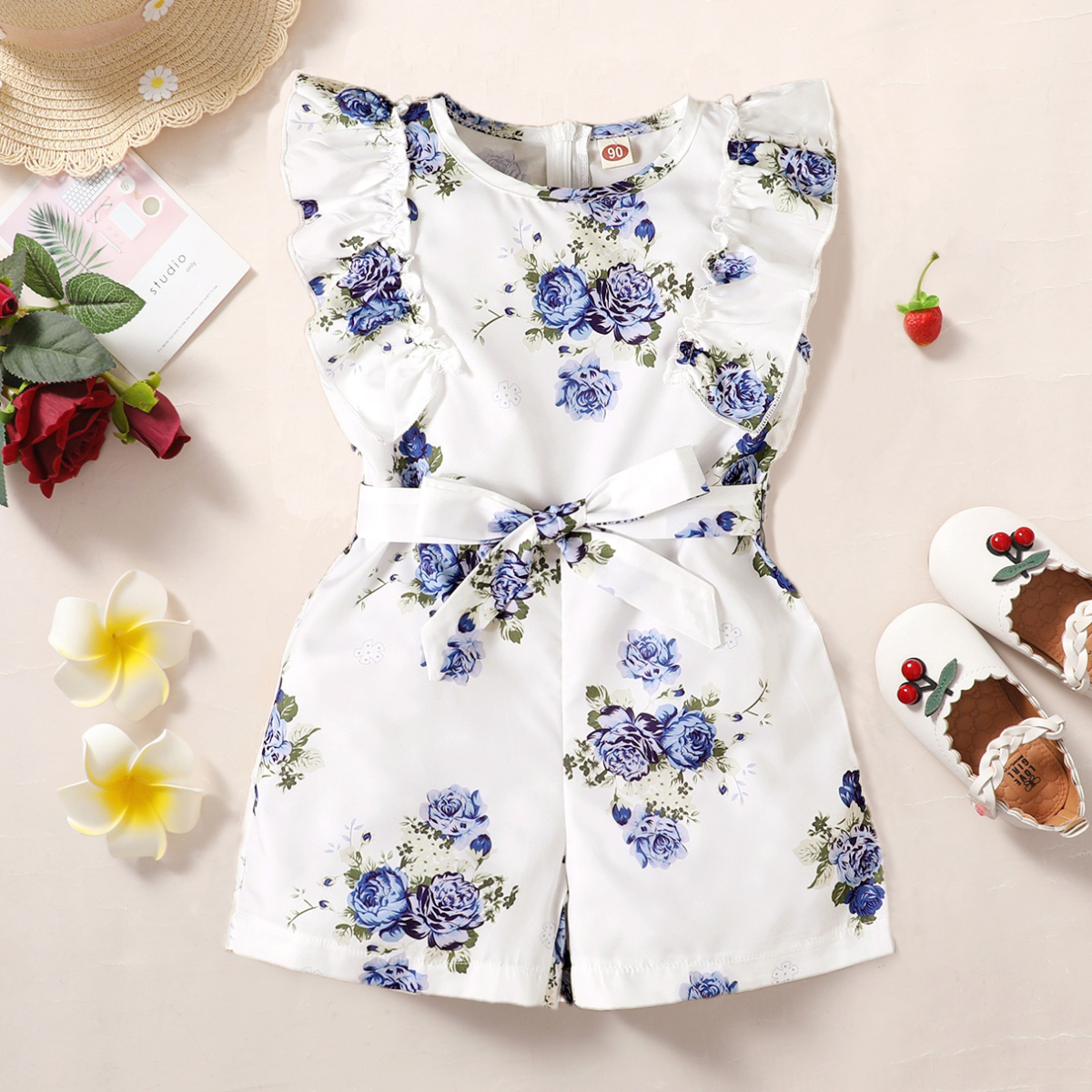 Baby Girl Beautiful Ruffle Floral Print Overalls WIth Belt Wholesale