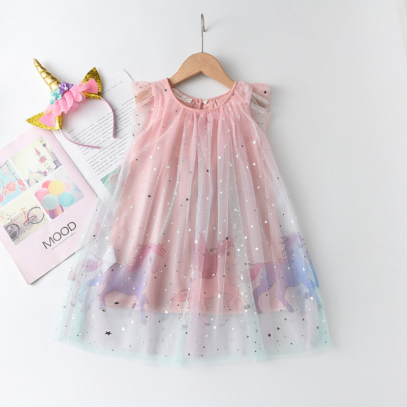 [ANASALA FAMILY PICK]Toddler Girl Star Mesh Gradient Skirt & Headhand Wholesale