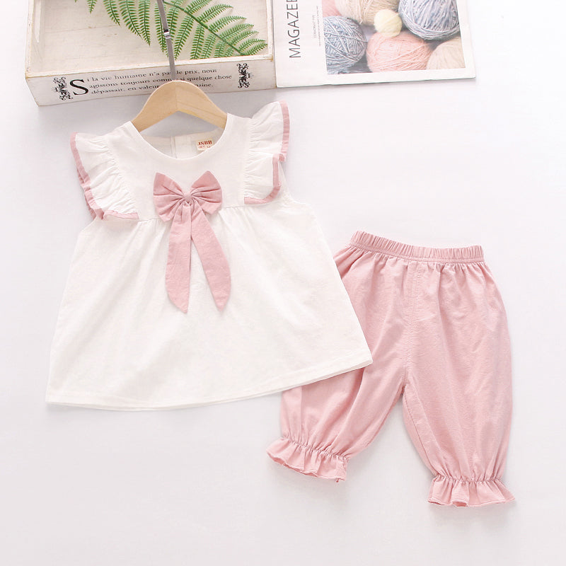 Toddler Girl Bow Fly Sleeves & Trousers Wholesale