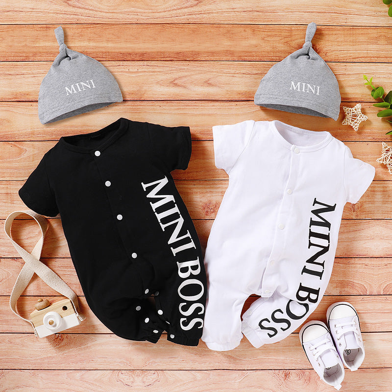2-piece Letter Printed Bodysuit & Hat for Baby Boy Wholesale