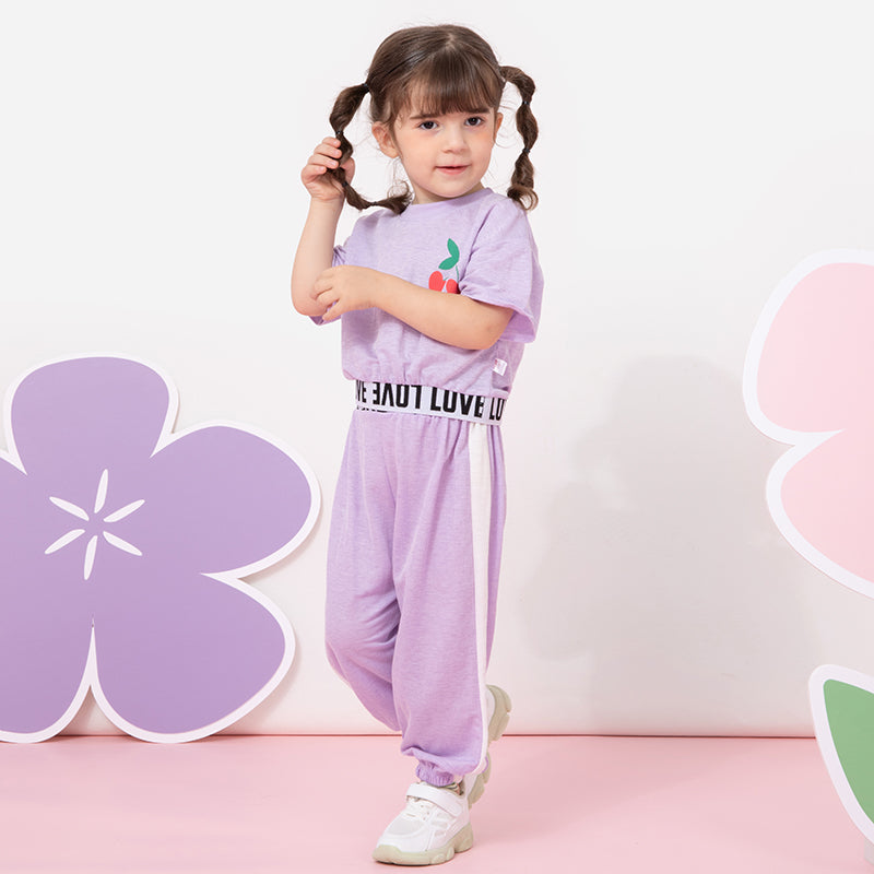 Toddler Girl Cherry Pattern Letter Print T-shirt & Pants Wholesale