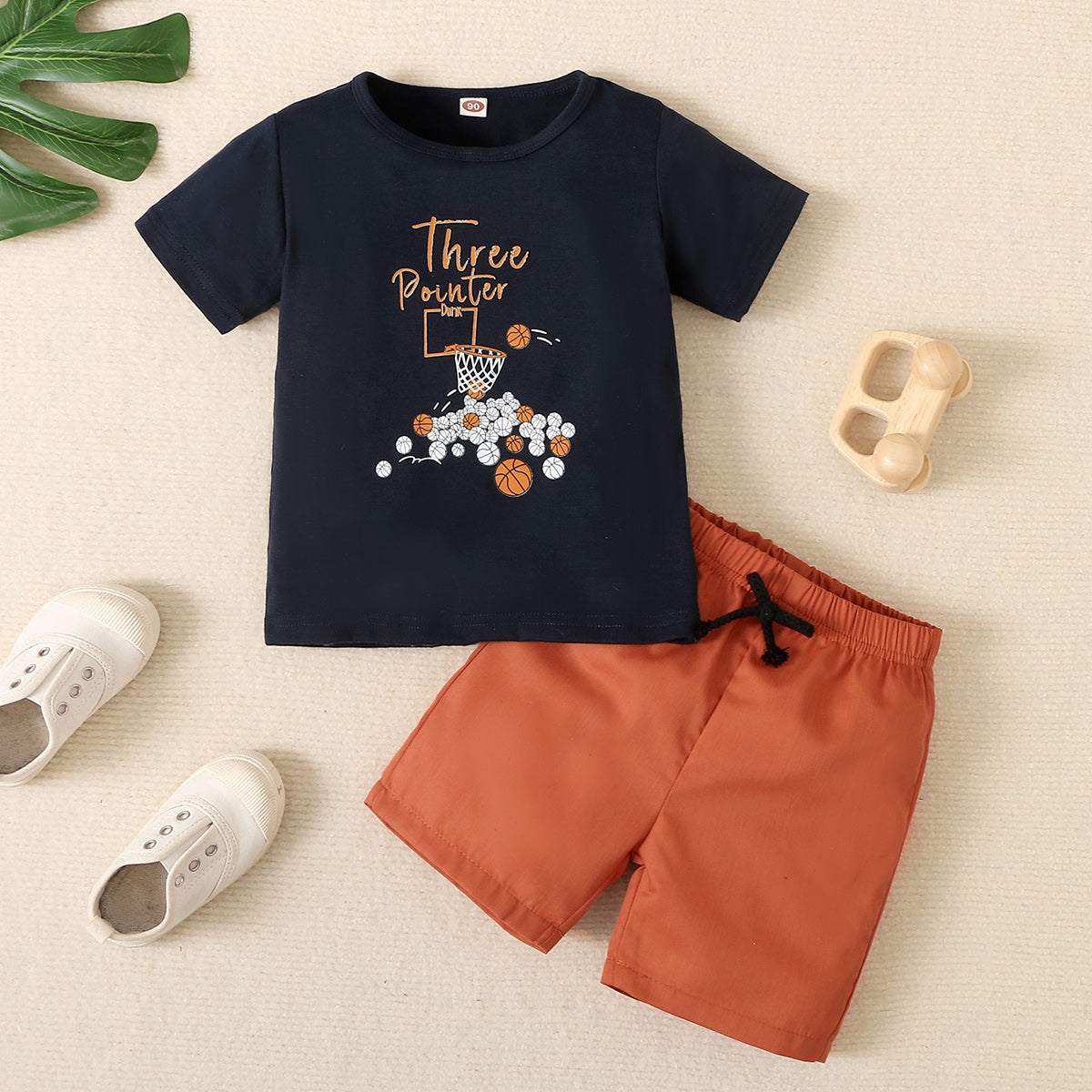 Toddler Boy Cotton Cartoon Basketball Top & Shorts Wholesale