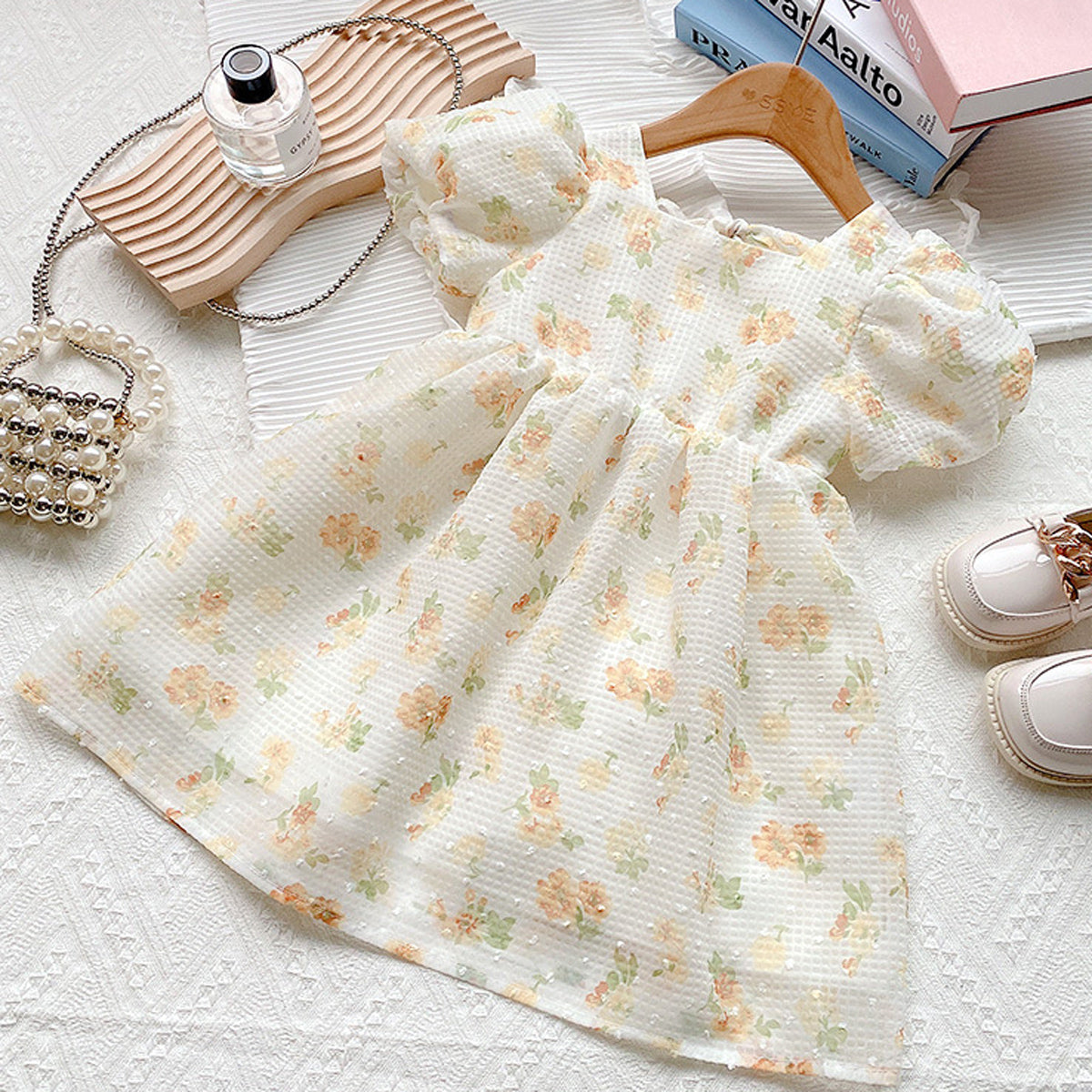 Toddler Girls Cotton Floral Square Neck Princess Skirt Dress Wholesale