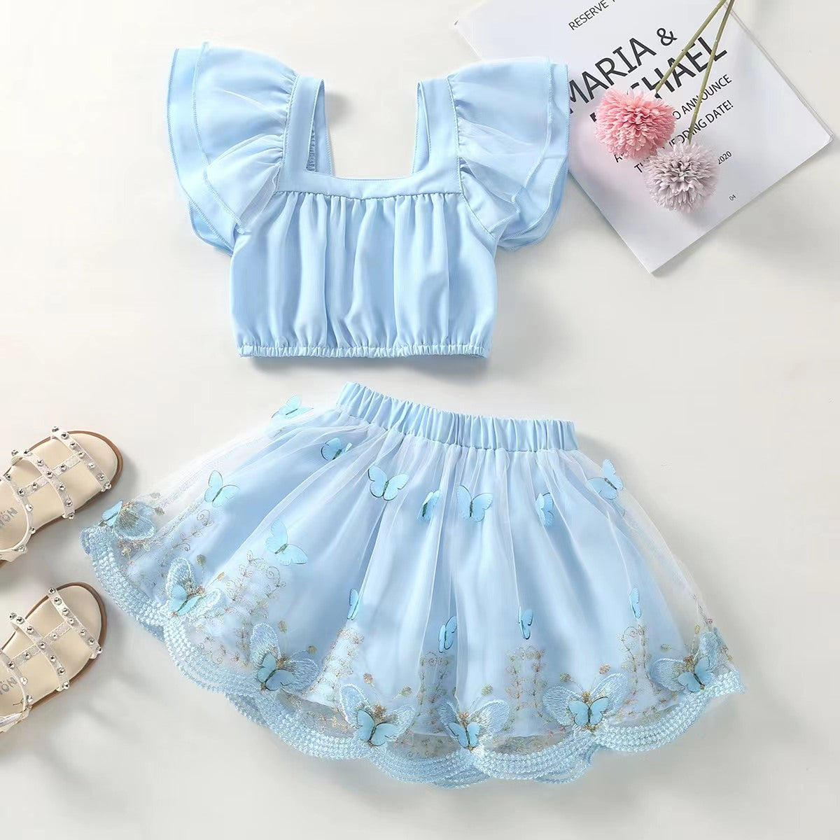Toddler Girl Eleguard Jacquard Fabric Butterfly Tank Top & Skirt Wholesale