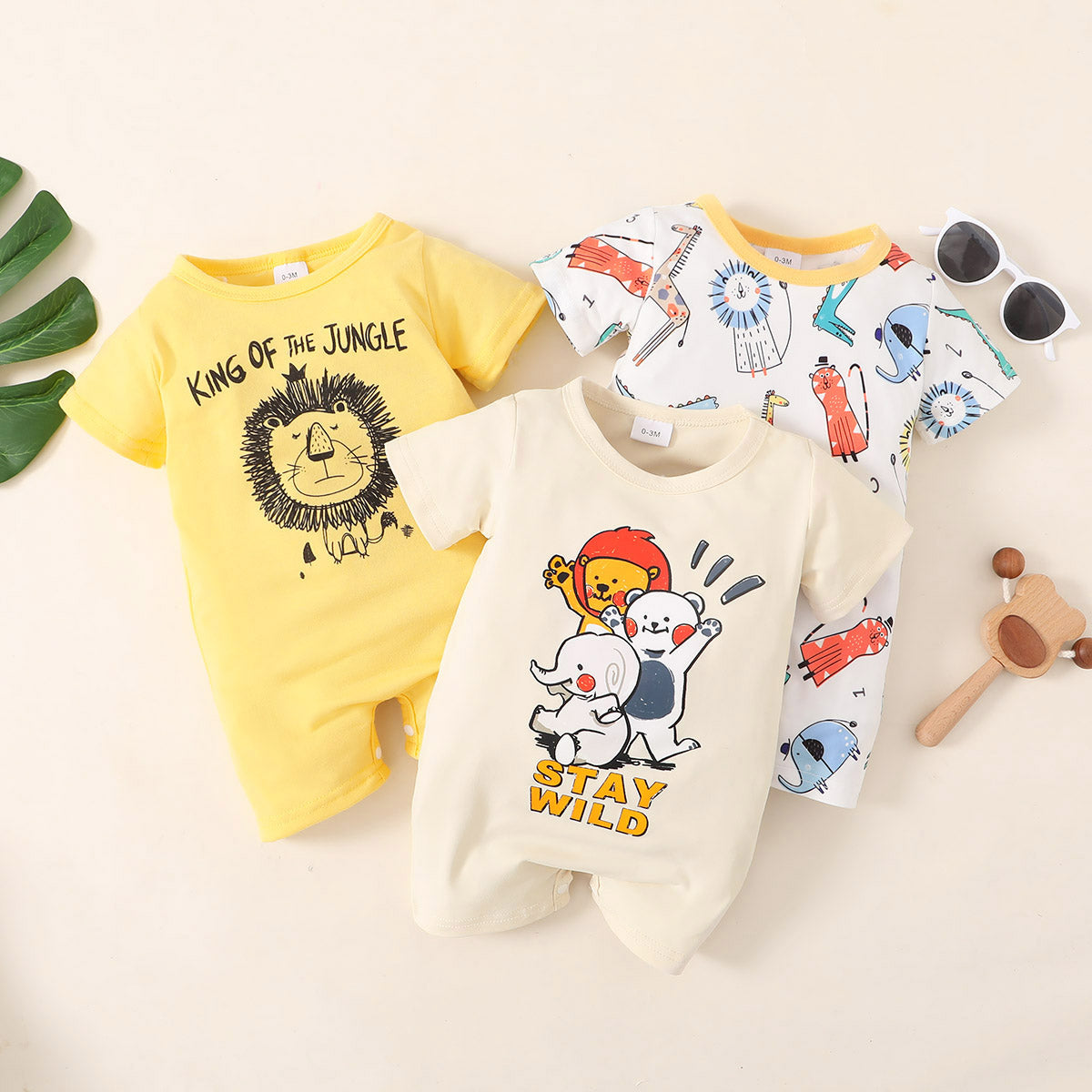 Baby Boy Cute Animal Zoo Pattern Short-sleeve Romper Wholesale