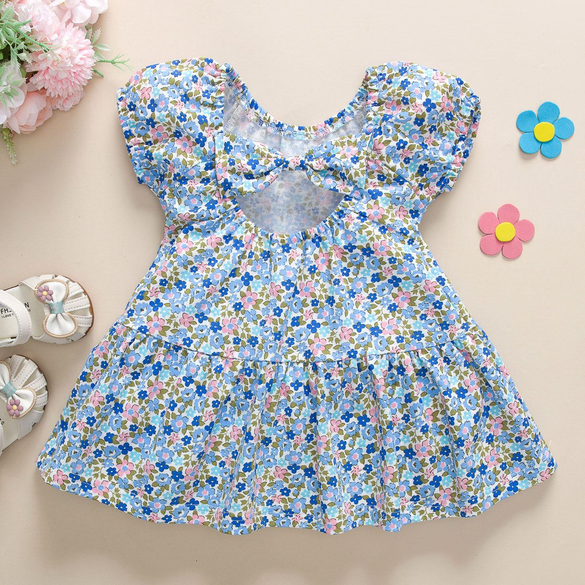 Baby Girl Floral Pattern Back Cutout Bow-knot Decor Dress Wholesale