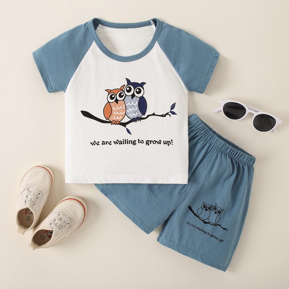 Toddler Boy Cartoon Owl Casual T-shirt & Shorts Pajamas Wholesale