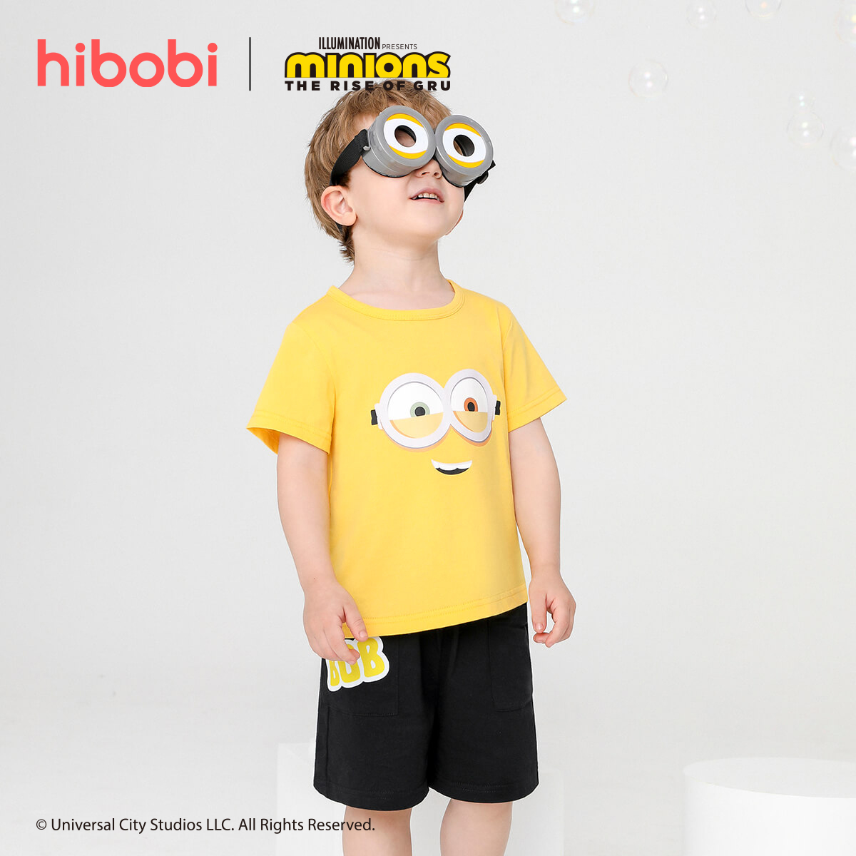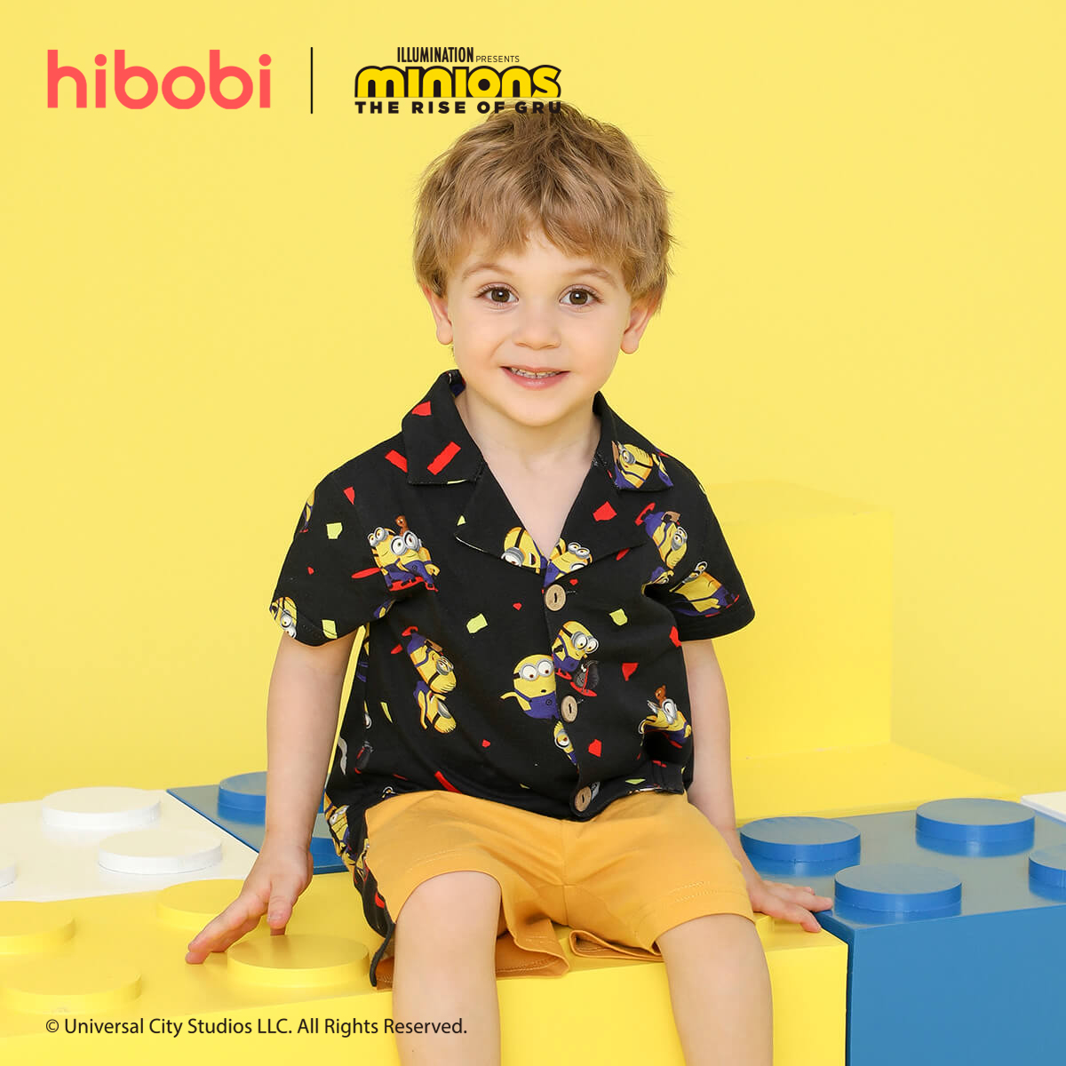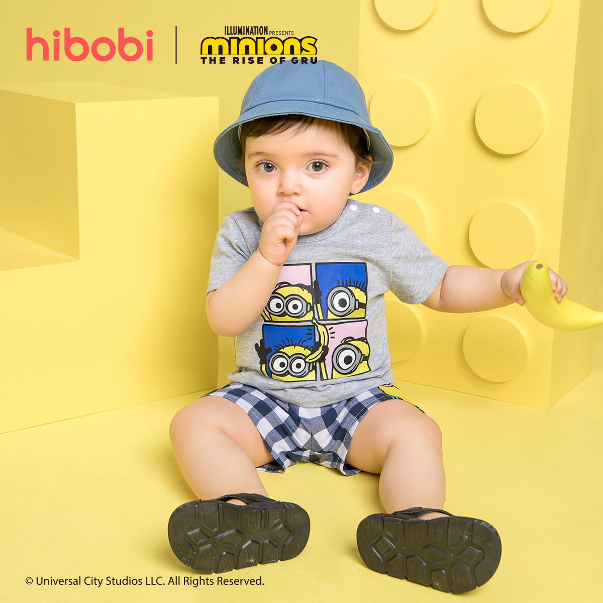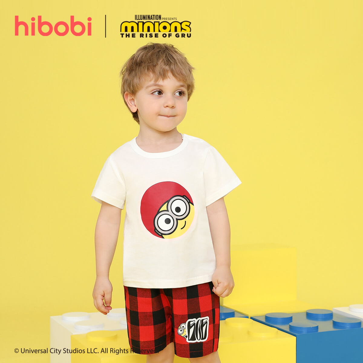 Minions × hibobi Boy Baby Printed Blue Checked Shorts Suit Wholesale