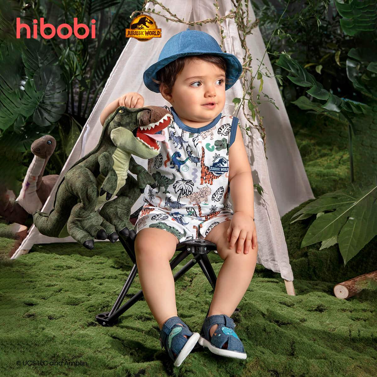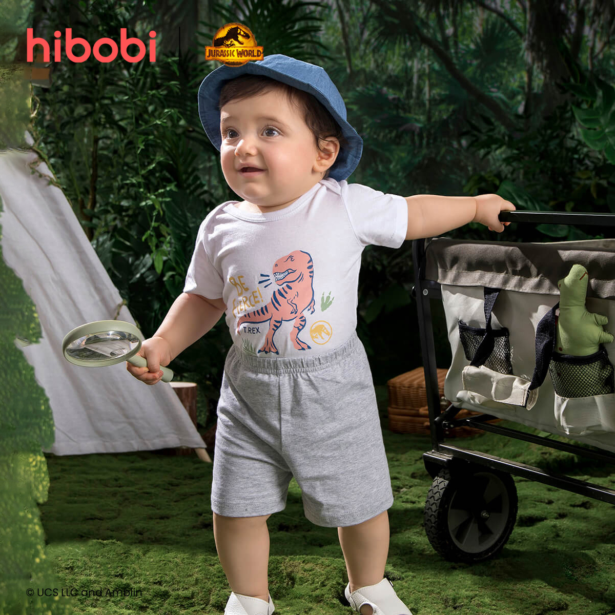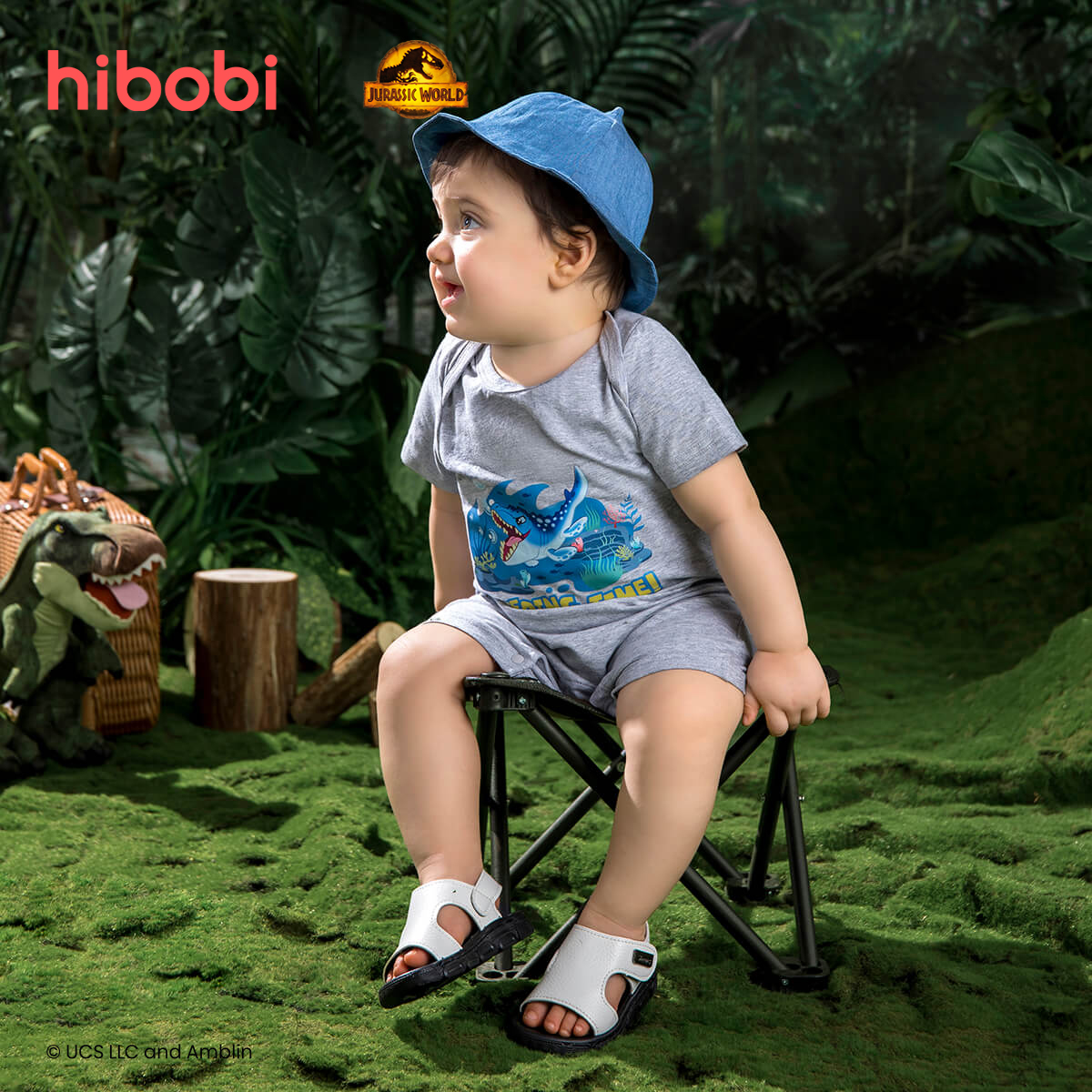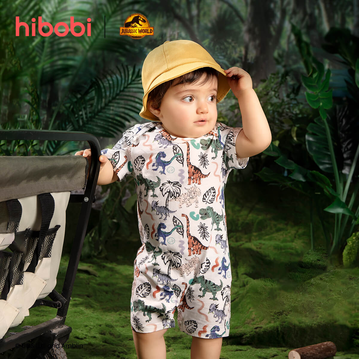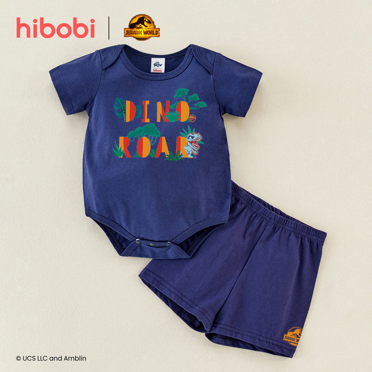 hibobi×Jurassic Baby Cartoon Print Short Sleeve Cotton Jumpsuit&Shorts Wholesale