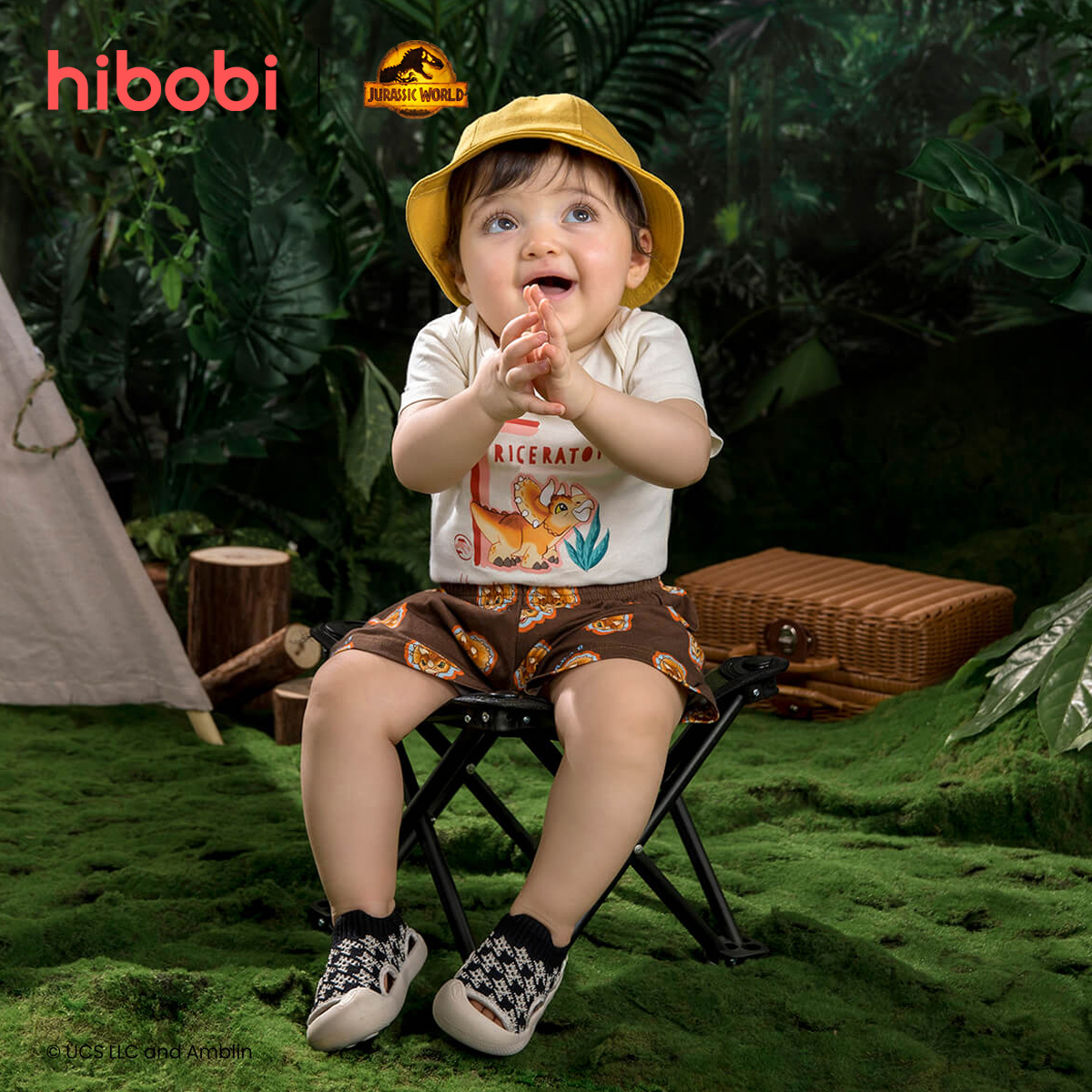 Jurassic World × hibobi baby Dinosaur Print Brown Shorts Suit Wholesale