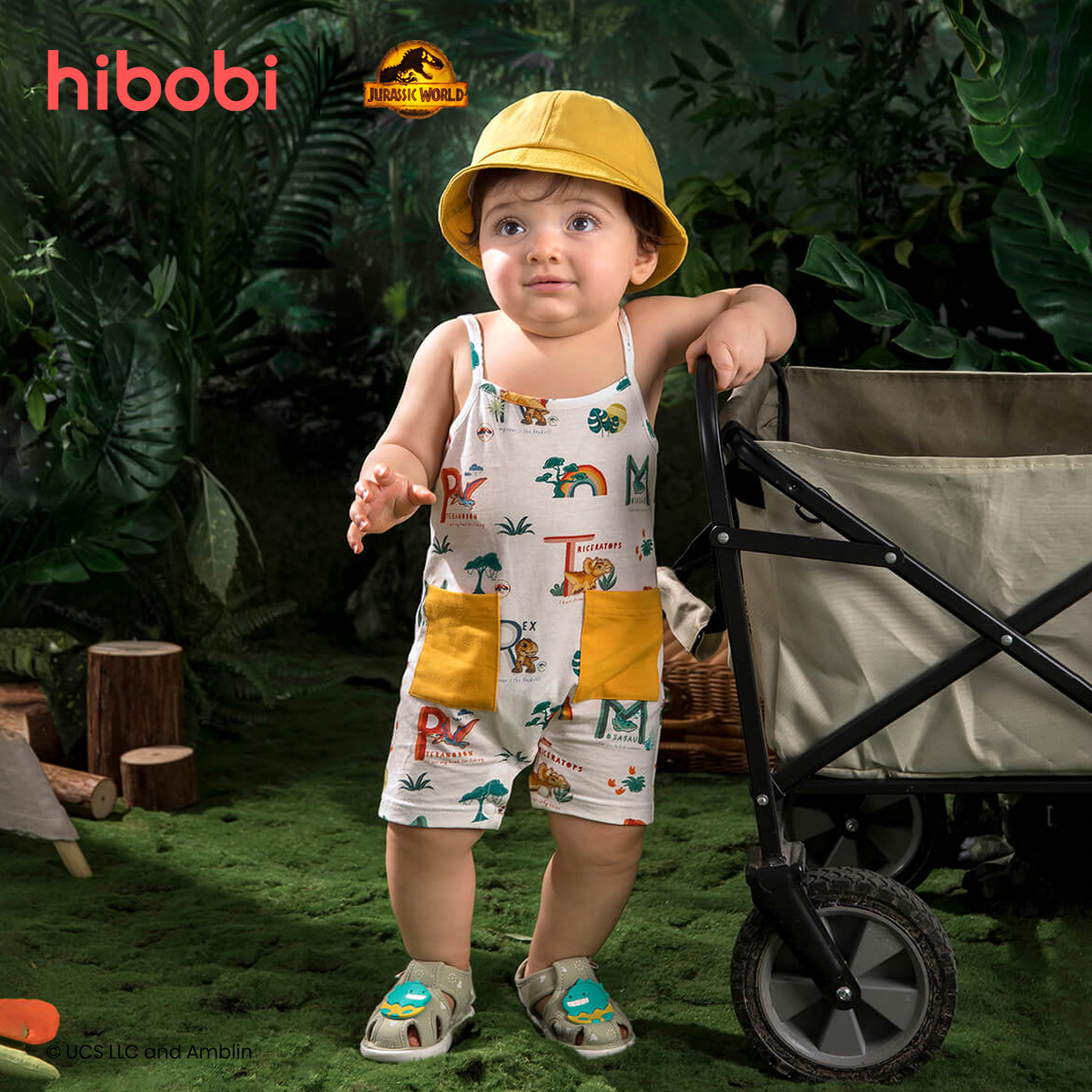 Jurassic World × hibobi boy baby Dinosaur Print Yellow Pocket Halter Bodysuit Wholesale
