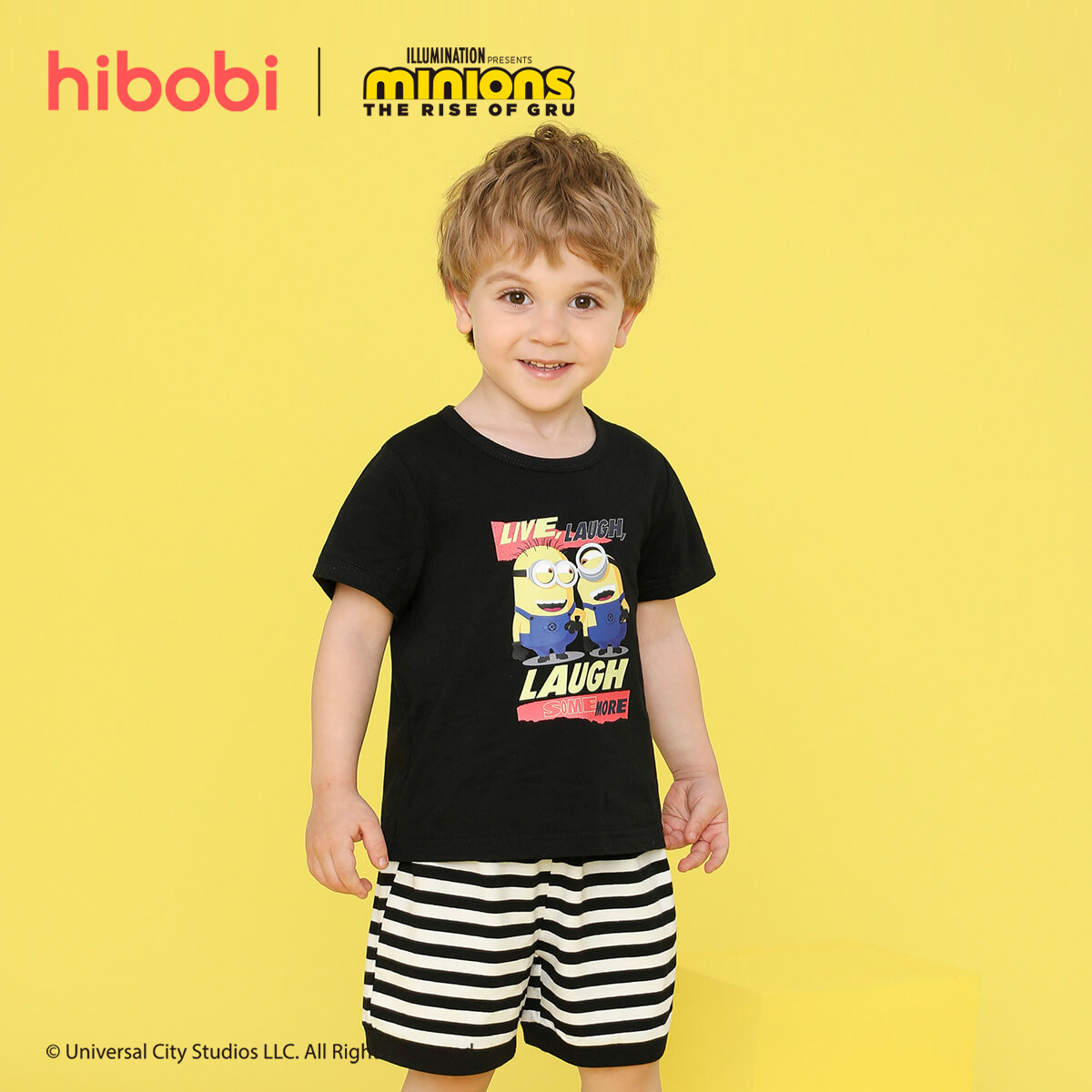 Minions × toddler boy Printed Black Striped Shorts Suit Wholesale