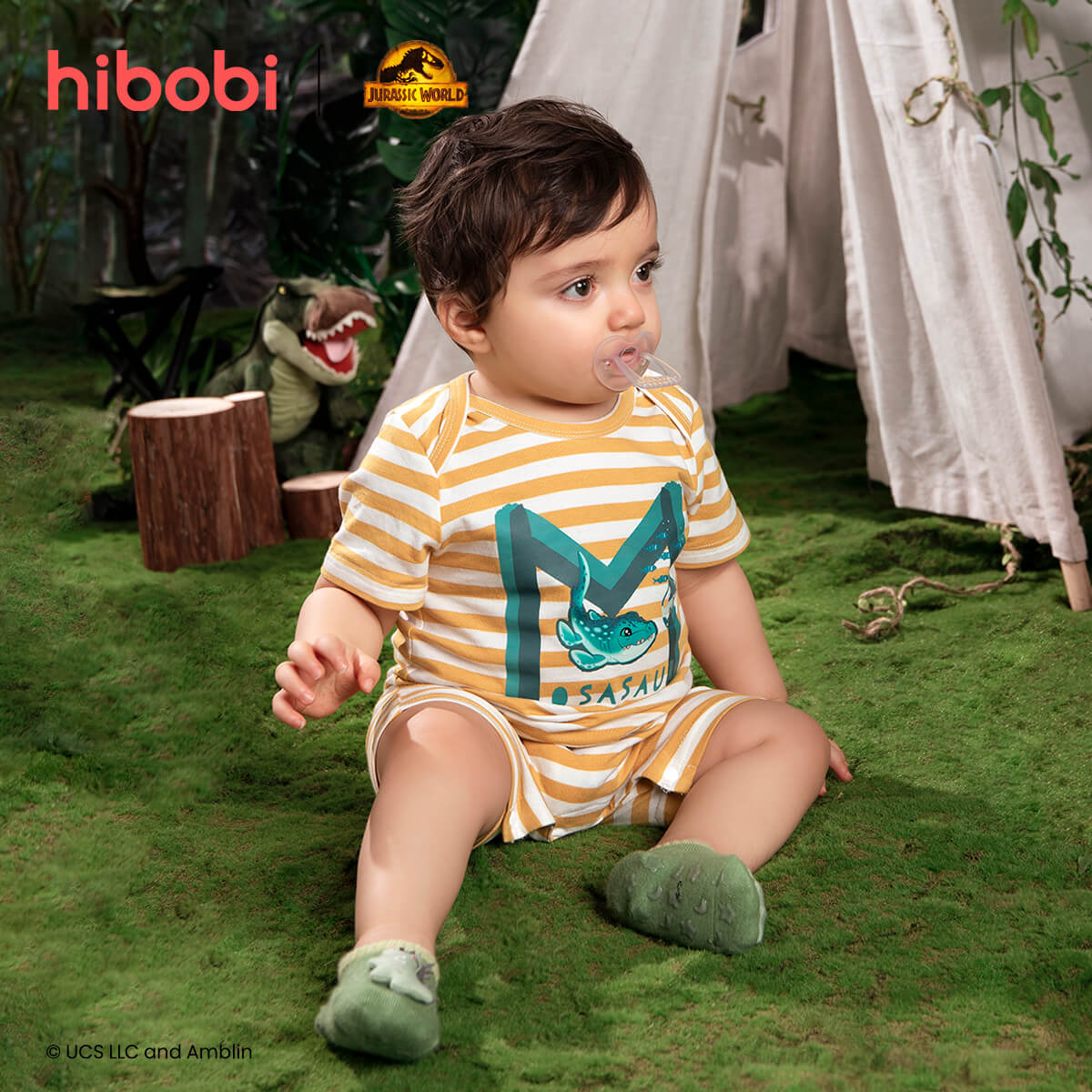 Jurassic World × hibobi baby Dinosaur Print Striped Bodysuit Wholesale