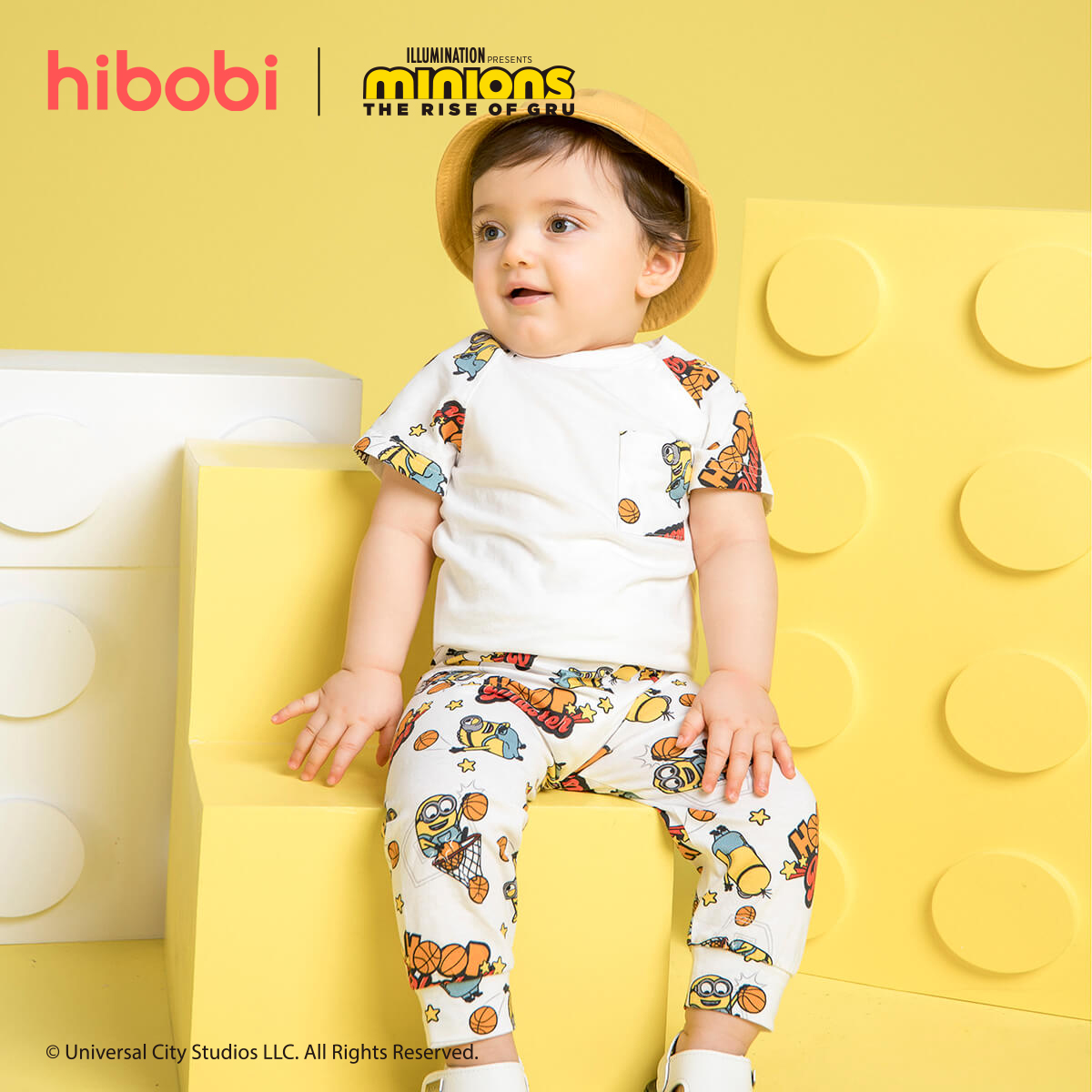Minions × hibobi Boy Baby White Printed Pocket Trouser Suit Wholesale