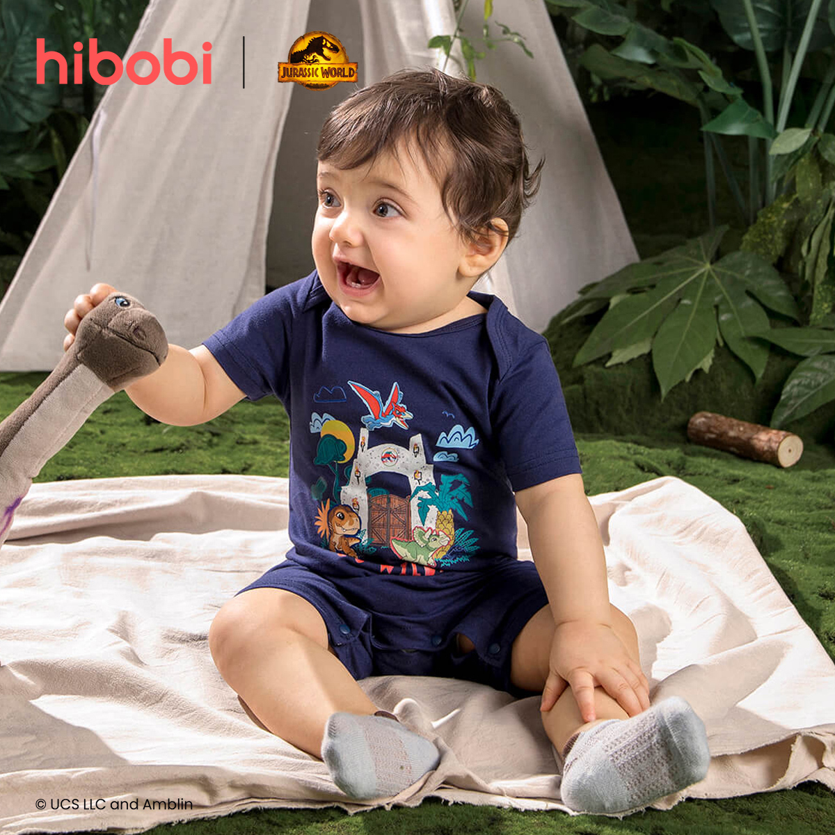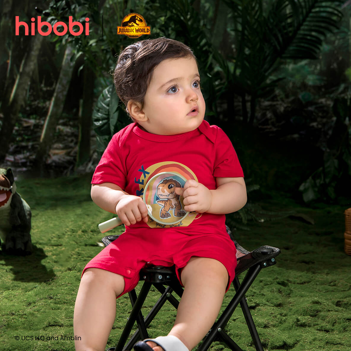 Jurassic World × hibobi boy baby Dinosaur Print Strappy Bodysuit Wholesale