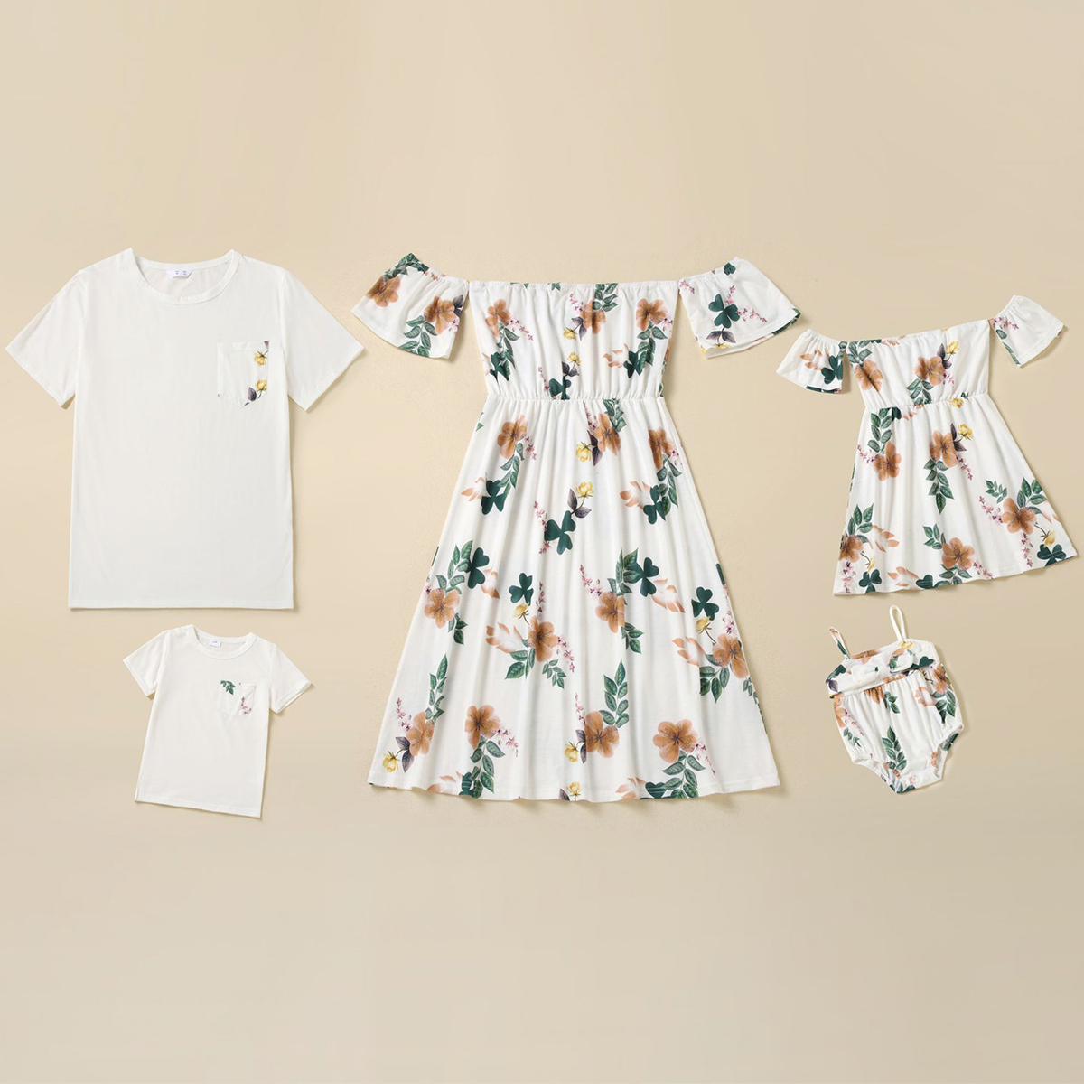 Family Matching Floral Print Short Sleeve Dress and T-shirt Wholesale