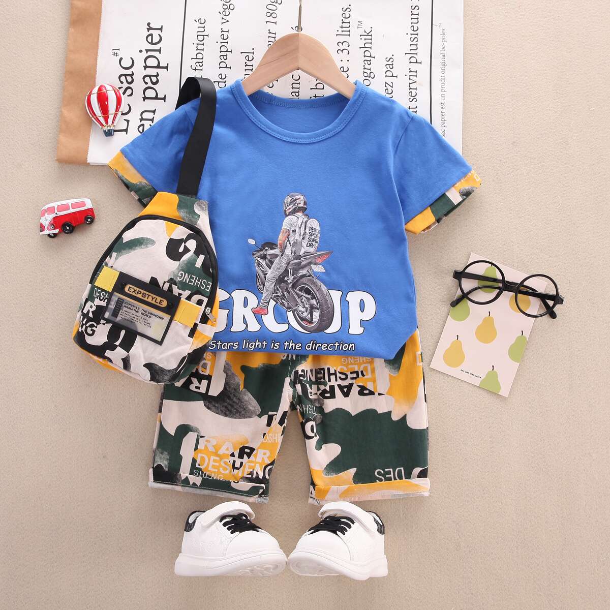 Toddler Boy Casual Cartoon Camouflage T-shirt & Shorts & Bag Wholesale