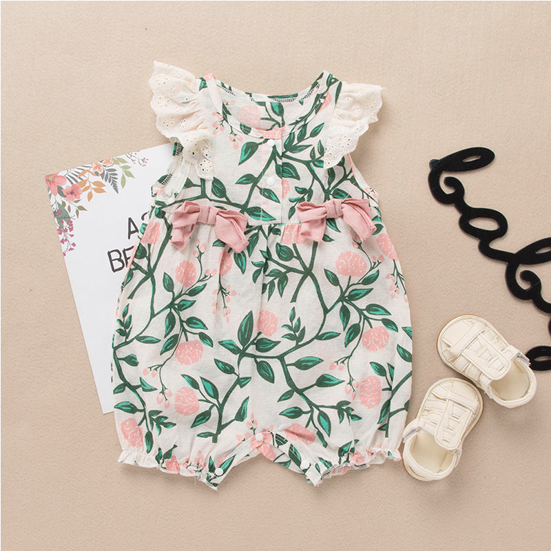 Ruffled Bow Decor Floral Jumpsuit Wholesale