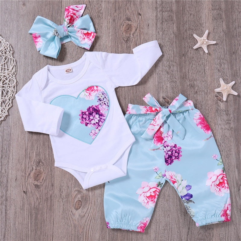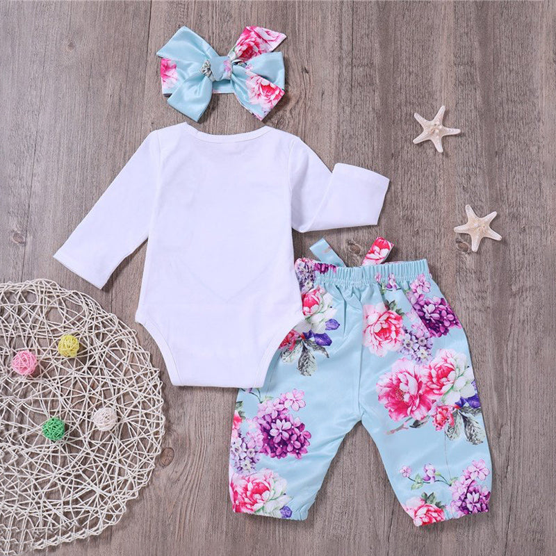 Pretty Floral Bodysuit and Pants and Headband Set Wholesale