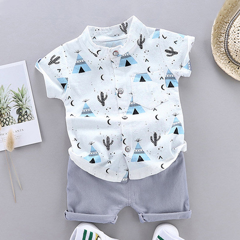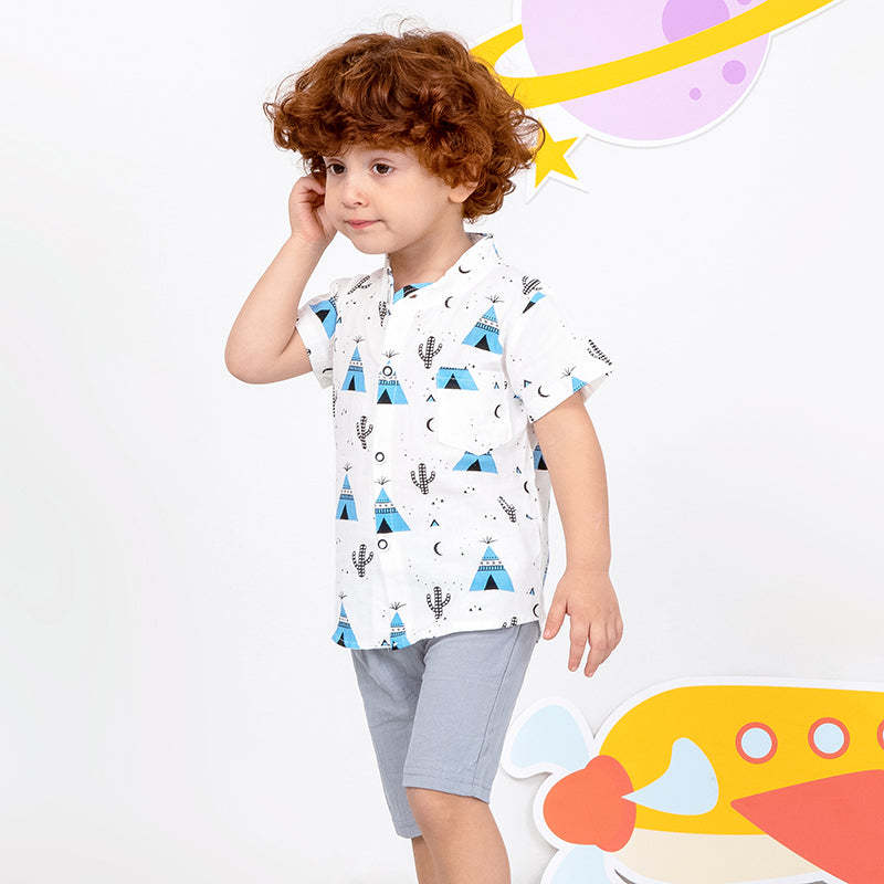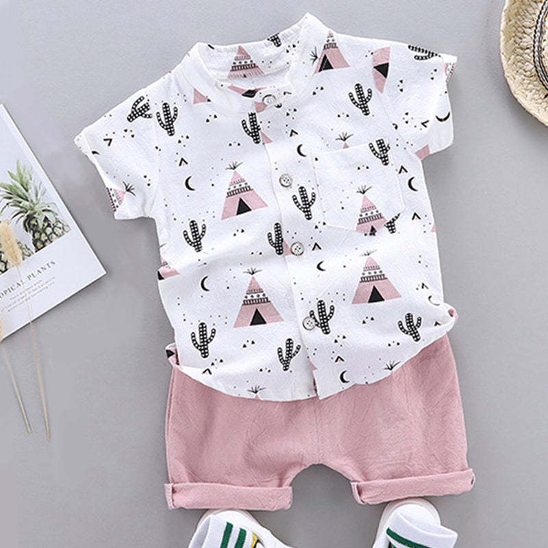 Toddler Boy Pyramid Print Short-sleeve Shirt and Pants Set Wholesale