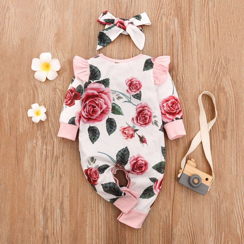 2-piece Floral Printed Jumpsuit & Headband for Baby Girl Wholesale