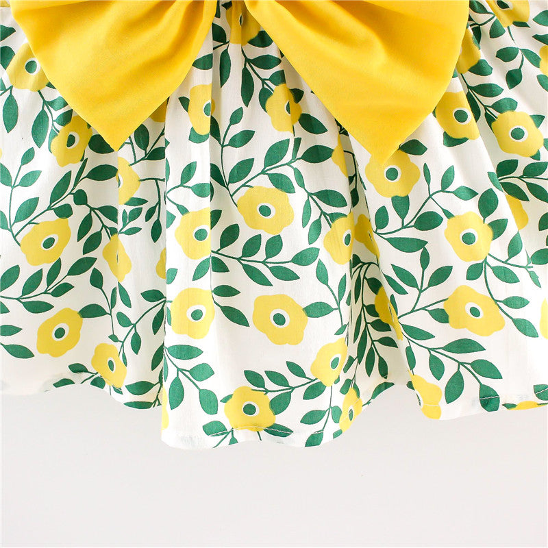 Toddler Girl Little Yellow Flower Pattern Casual Style Cotton Dress & Hat Wholesale